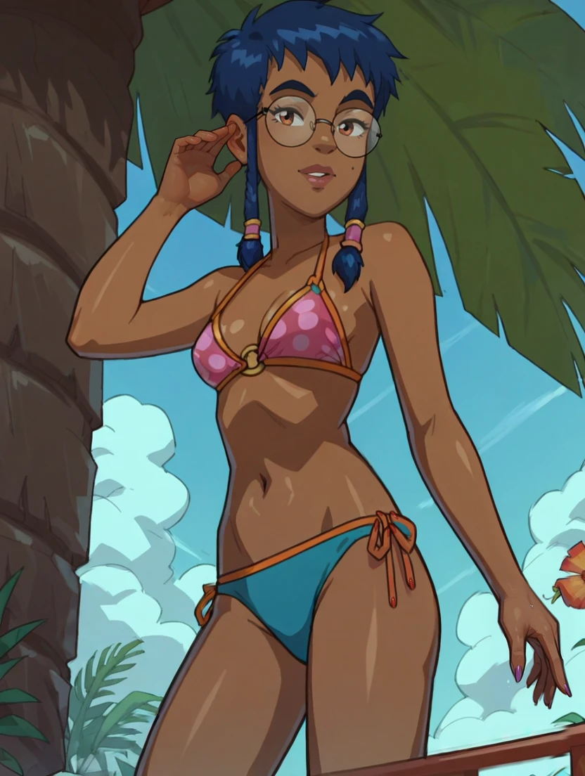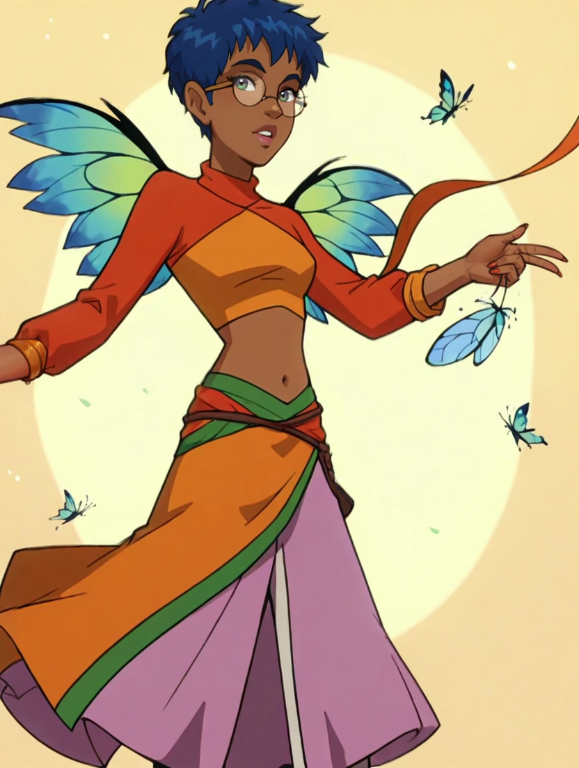 Taranee Cook, glasses, blue hair, short hair, dark skin