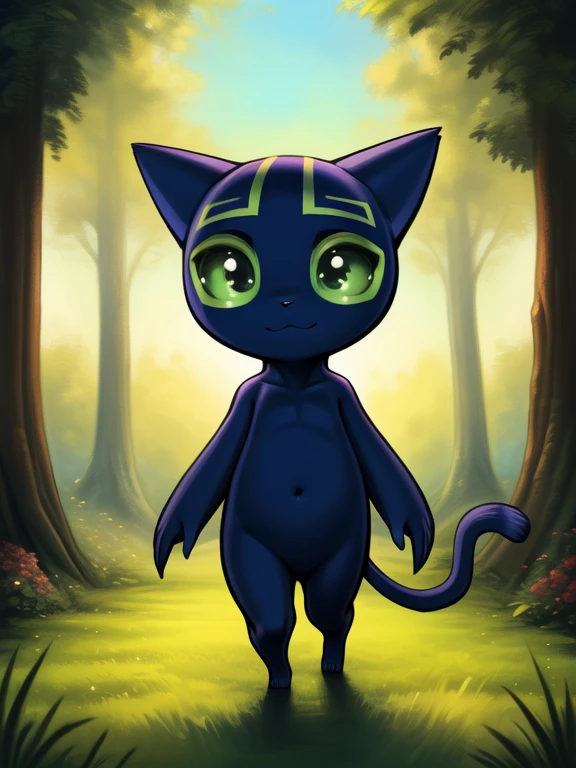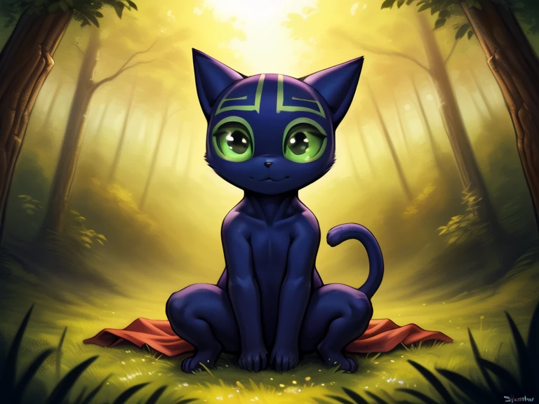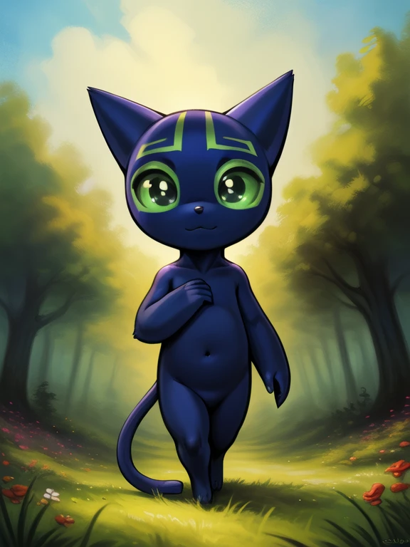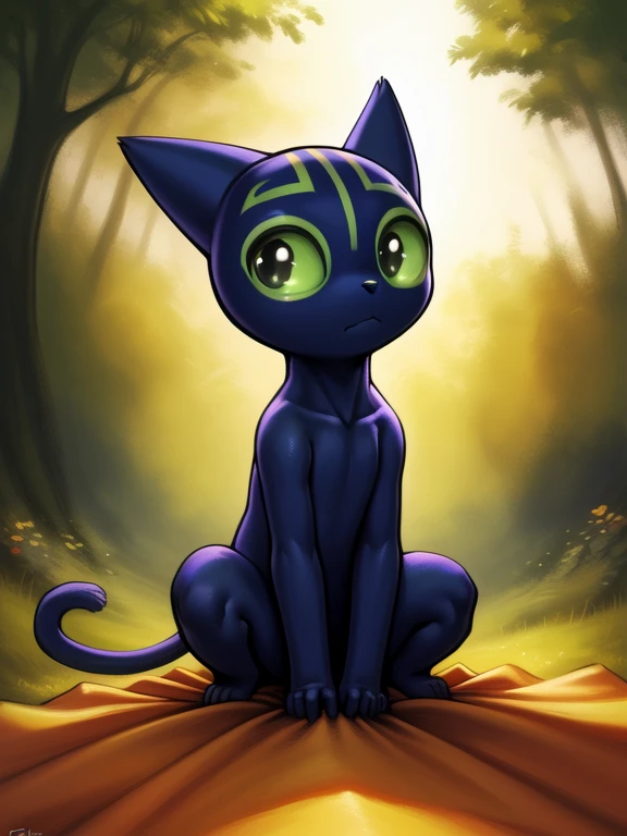 AmonsunMon, cat, furry, green sclera, blue fur, chibi,