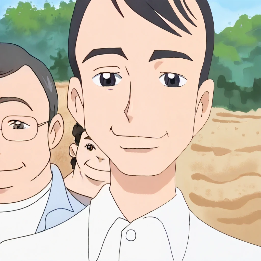 precure, pretty cure, futari wa precure, futari wa pretty cure, male, adult male, man, dark grey hair, dark grey eyes, collared shirt, white shirt, long sleeved shirt, long pants, navy pants,