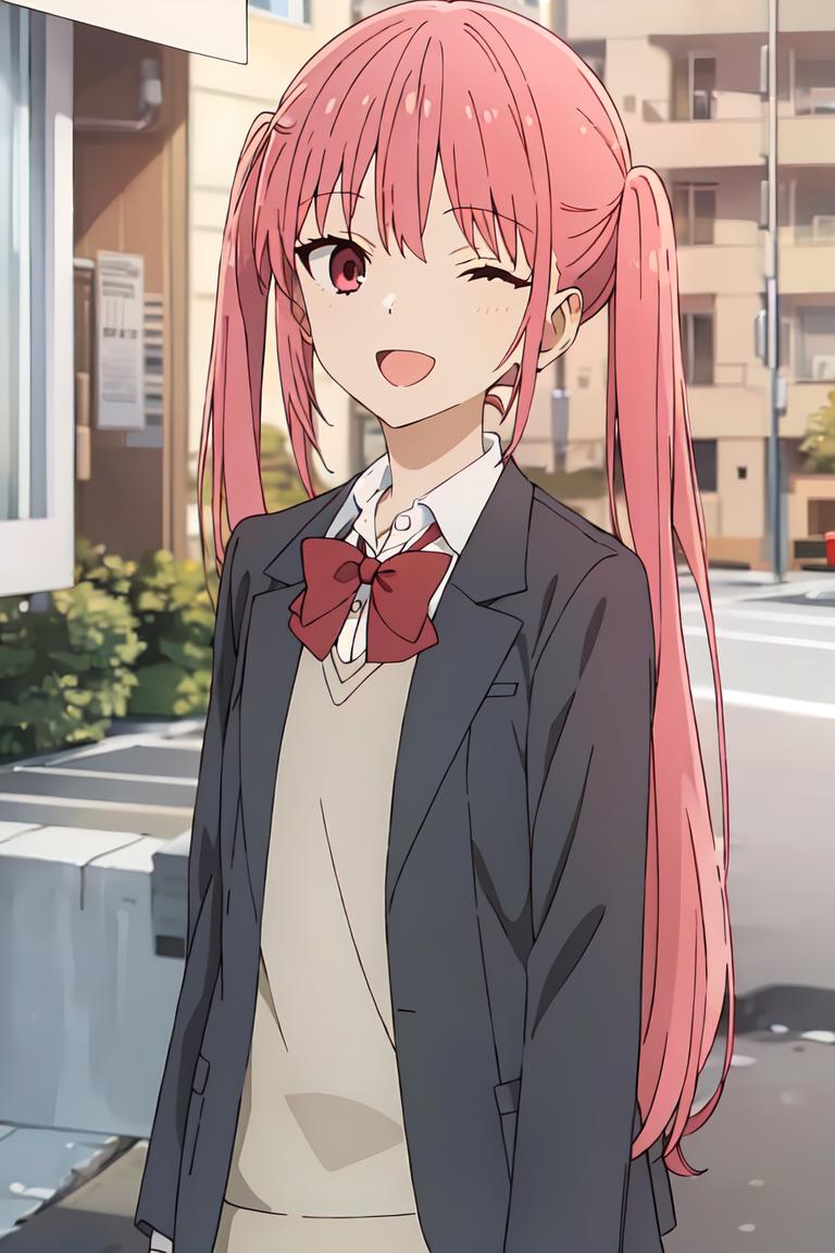 Remi, twintails, red hair, red eyes, school uniform,