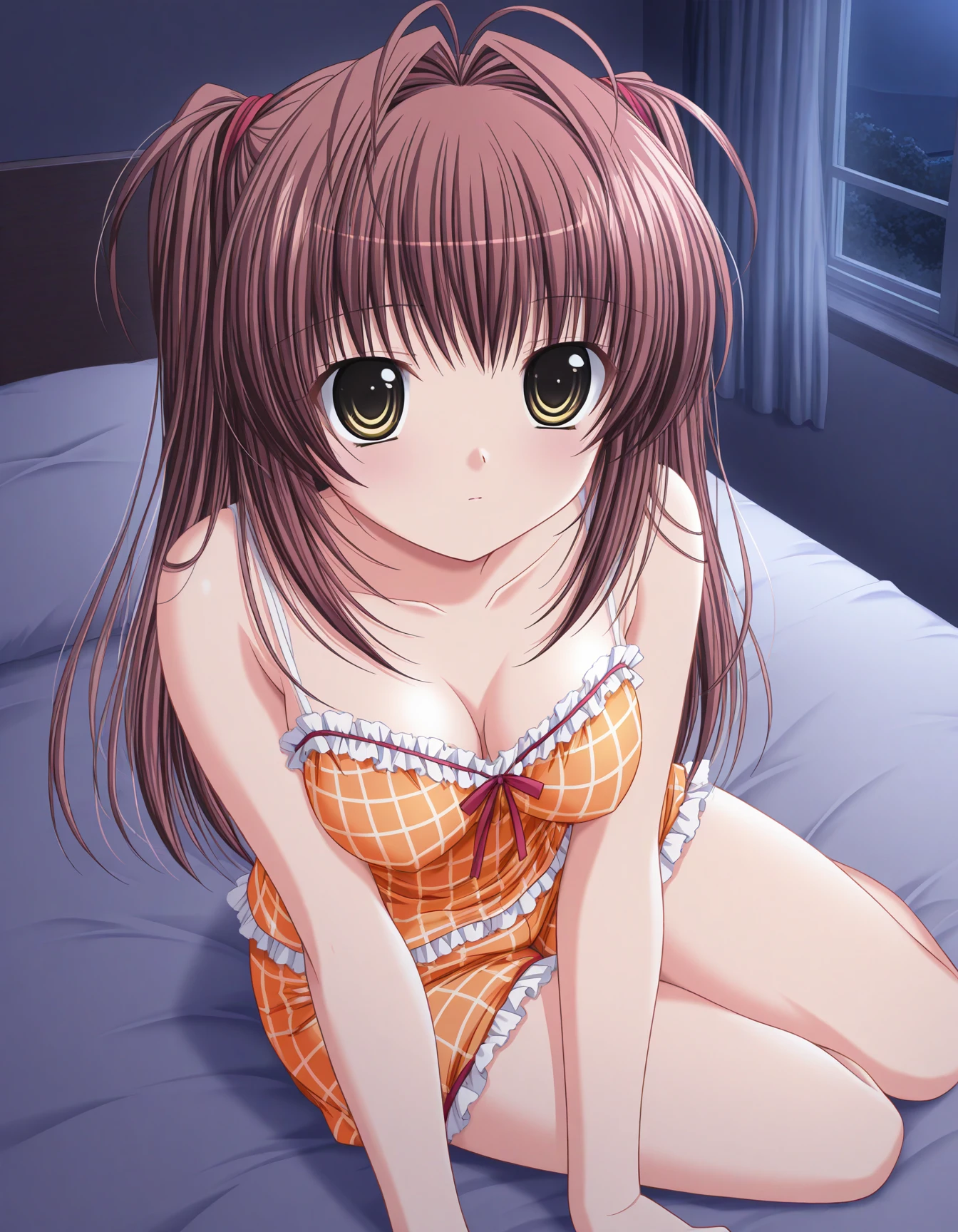 orange pajamas, checkered clothes, frilled camisole