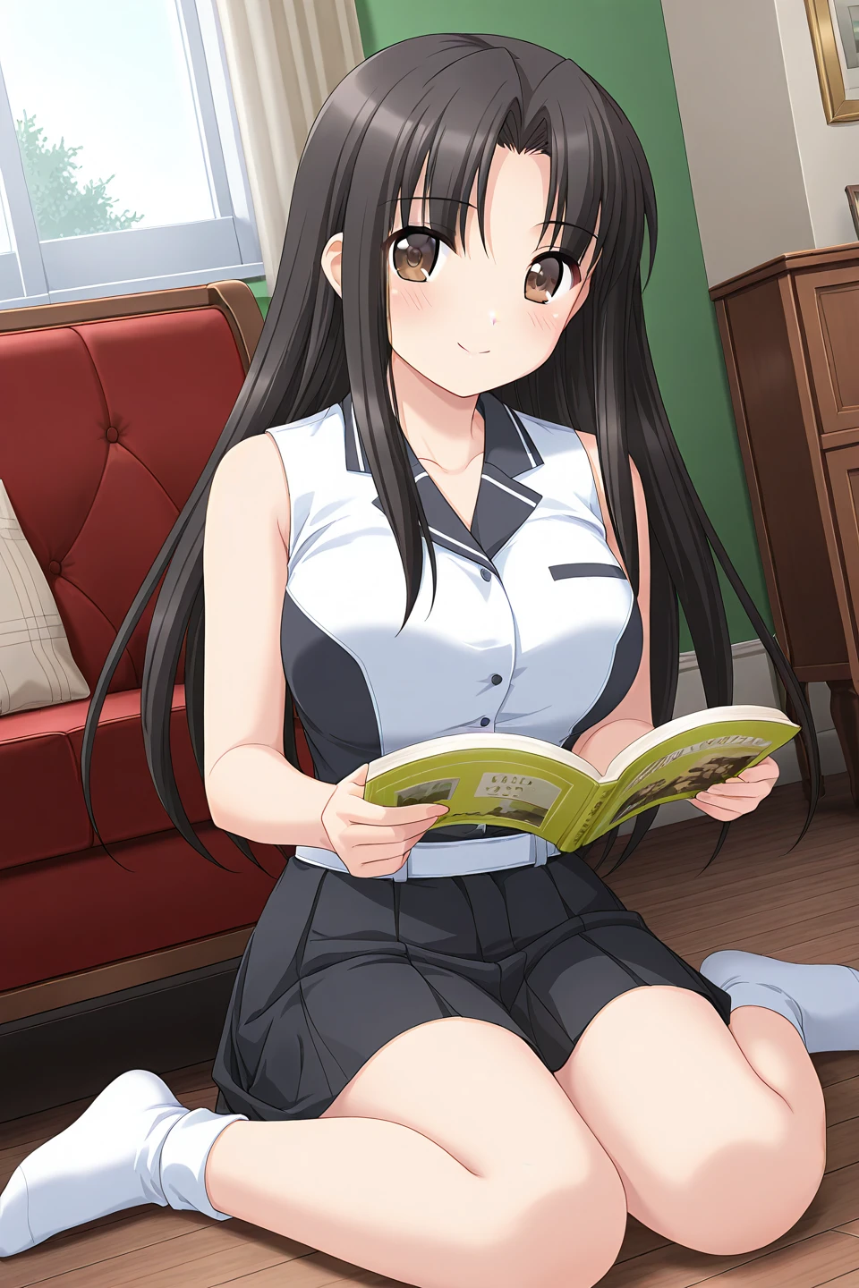 sakuraoka miharu,brown eyes,black hair,very long hair,parted bangs,hair intakes,straight hair,shiny hair,