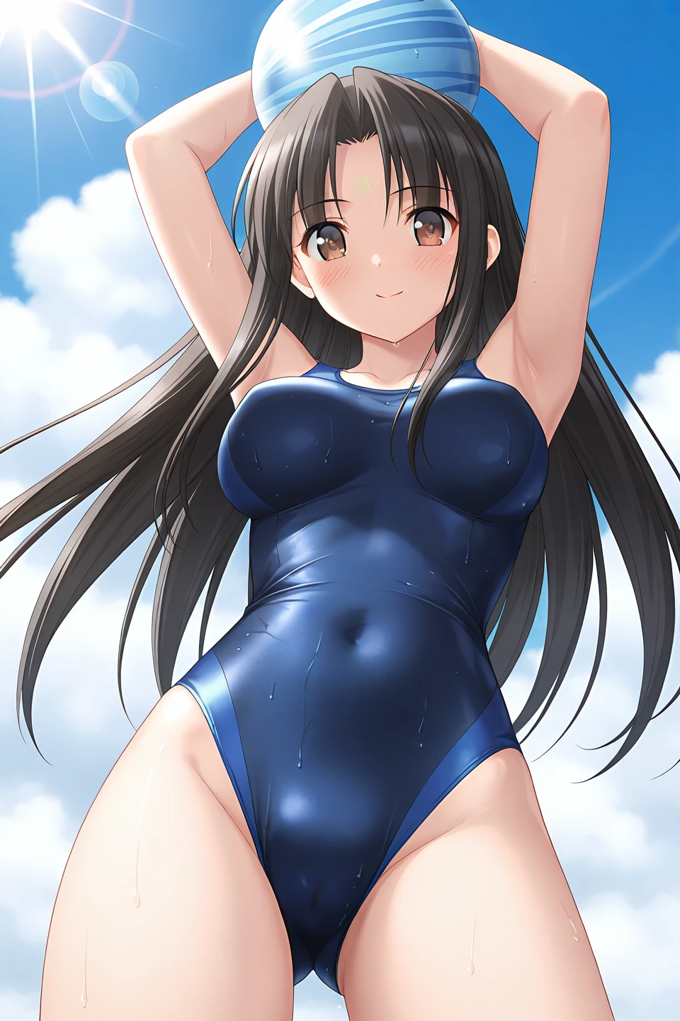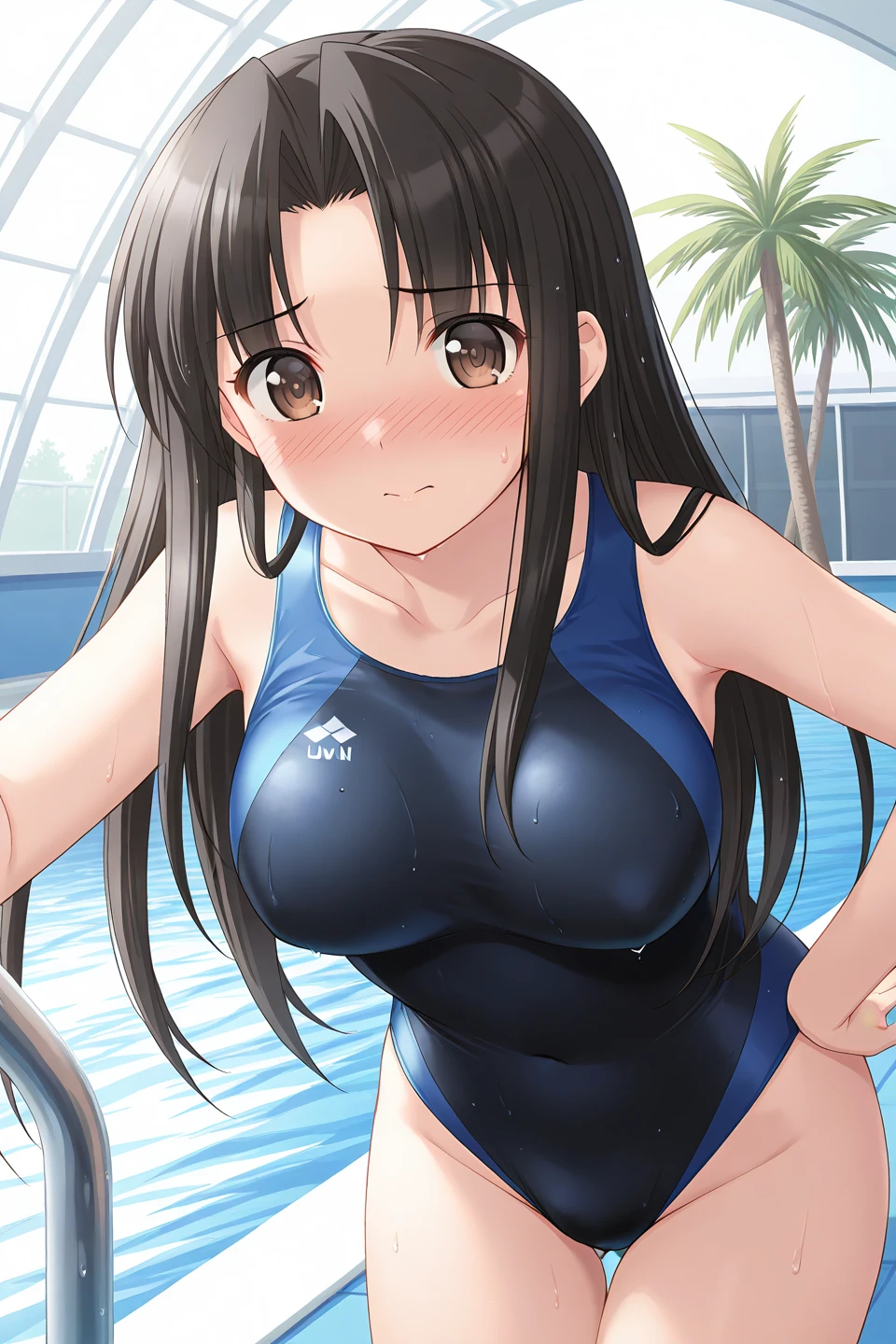 swimsuit, one-piece swimsuit, blue one-piece swimsuit, competition swimsuit,