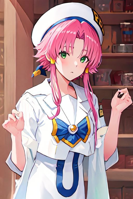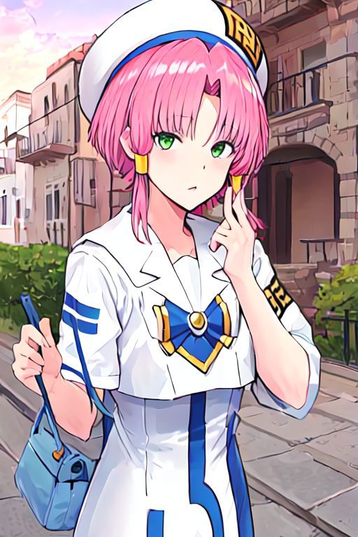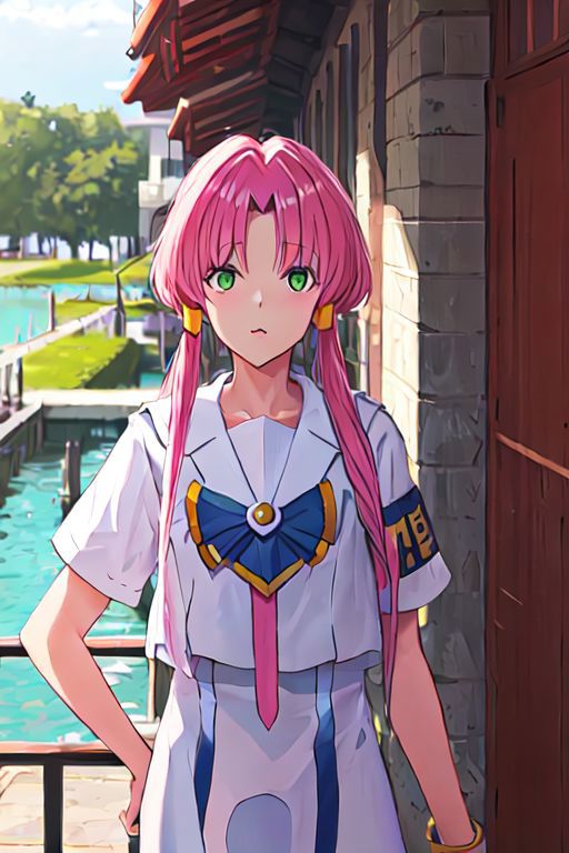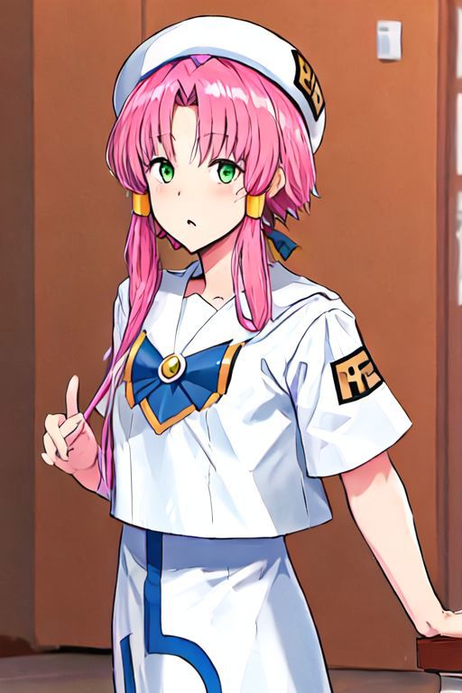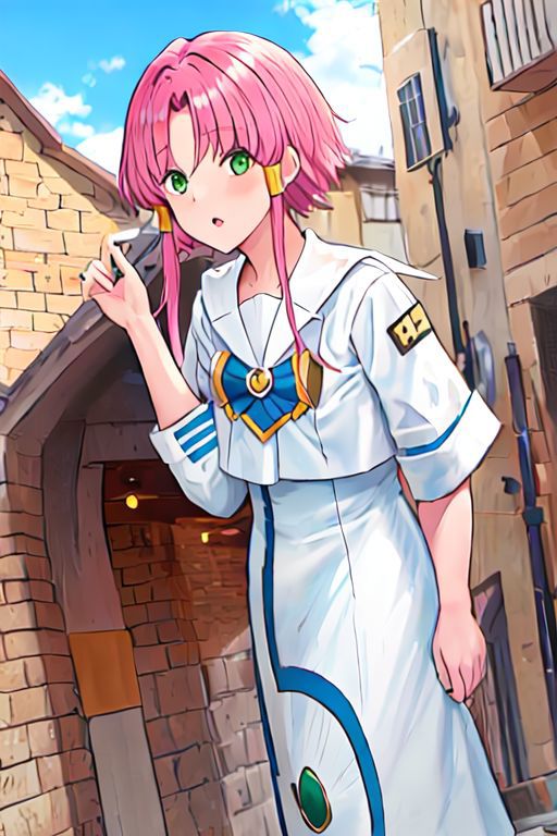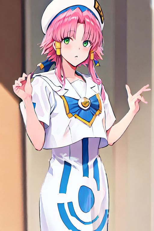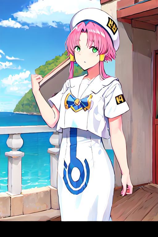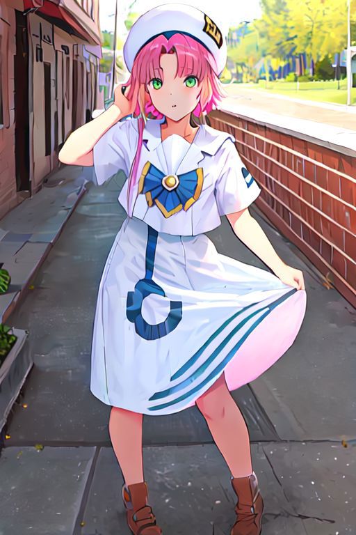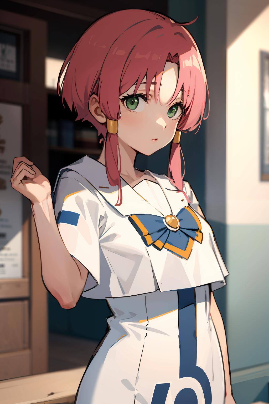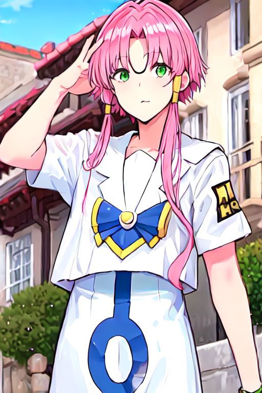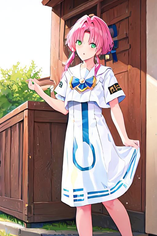 Optional Words: pink hair, hair tubes, green eyes, white dress, sailor collar
