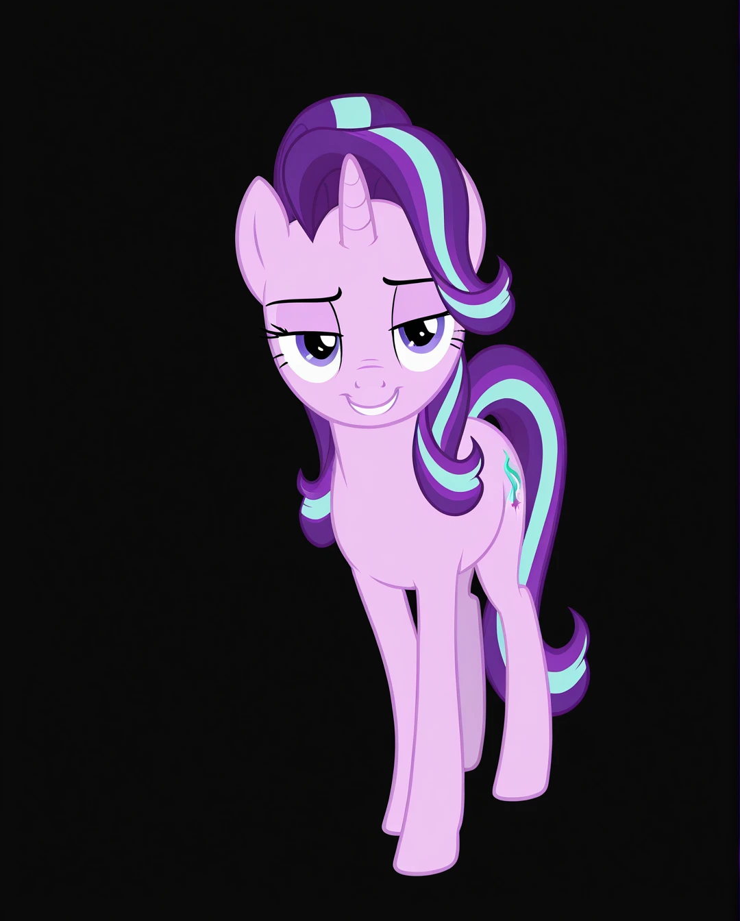 starlight_glimmer, unicorn, single horn, no humans, horns, multicolored hair, purple hair, purple eyes,