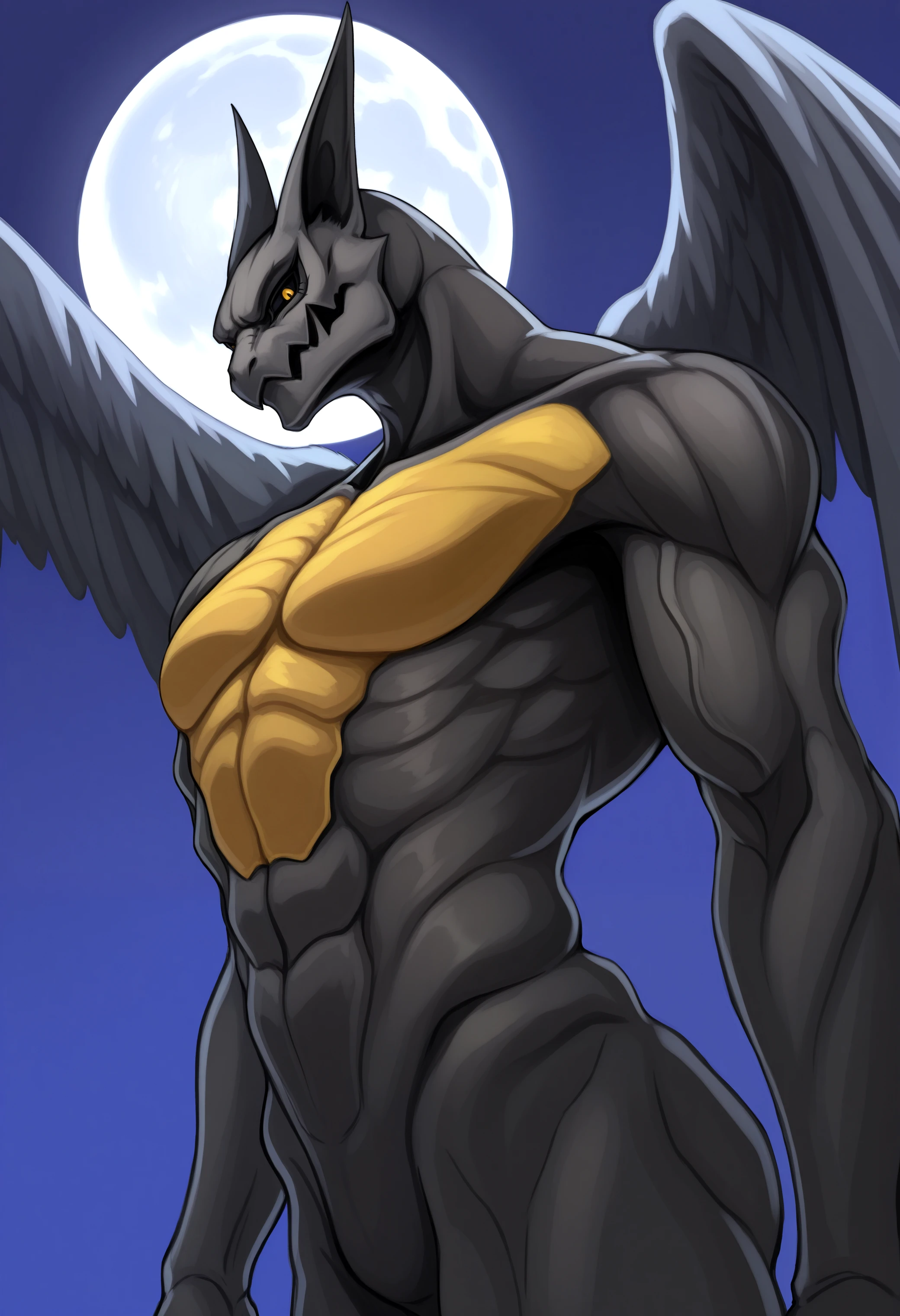 4rm4, black sclera, yellow eyes, wings,