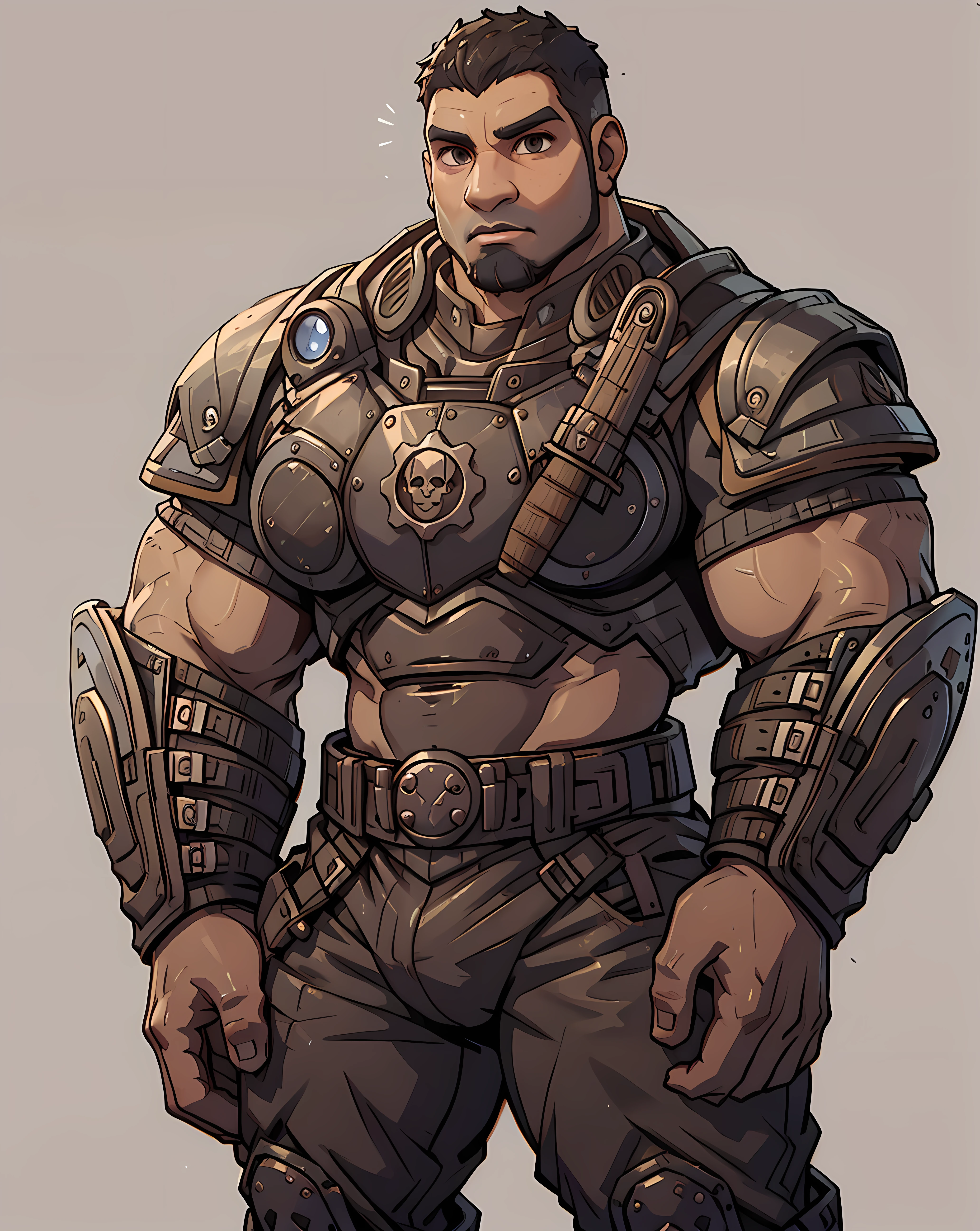 I made Dominic Santiago or known as Dom in Gears of War community. This loveable man was Marcus Fenix's best friend and right hand. I think Dom deserved to be made into a LoRA so you can made some artwork based on him. If you want to use Dom with his big beard like in Gears of War 3, you can visit this link instead: Full Beard Dom. Enjoy!