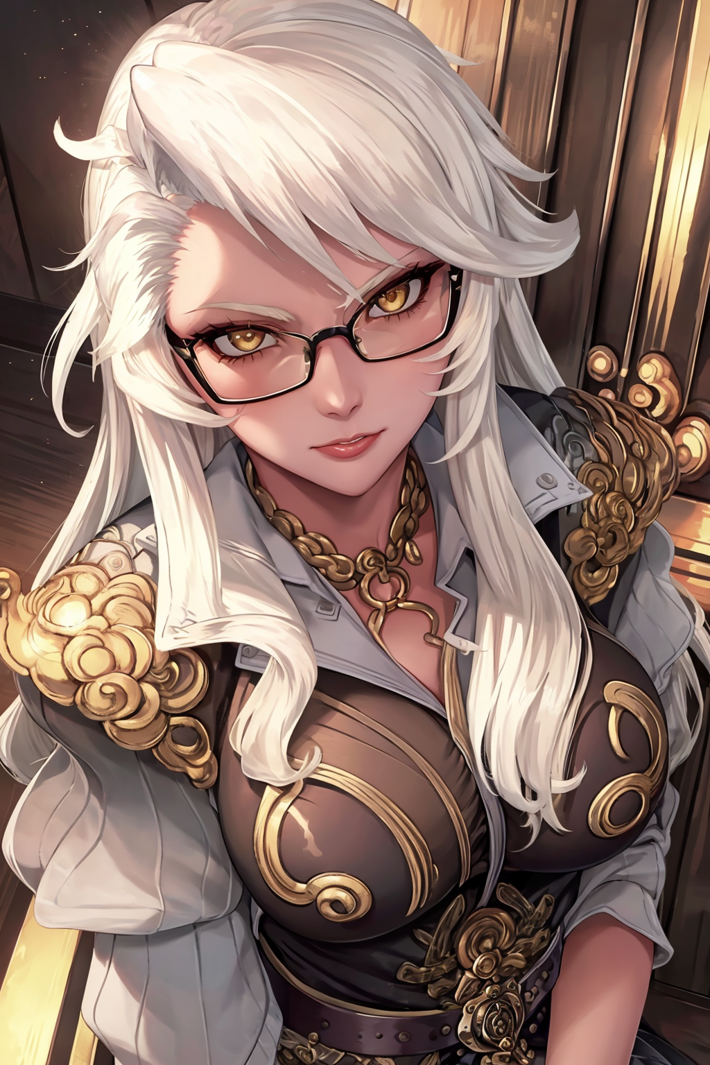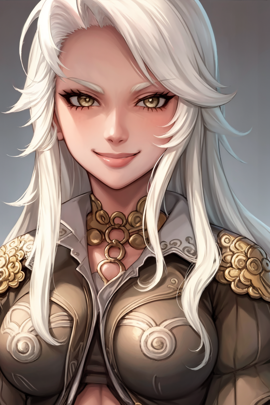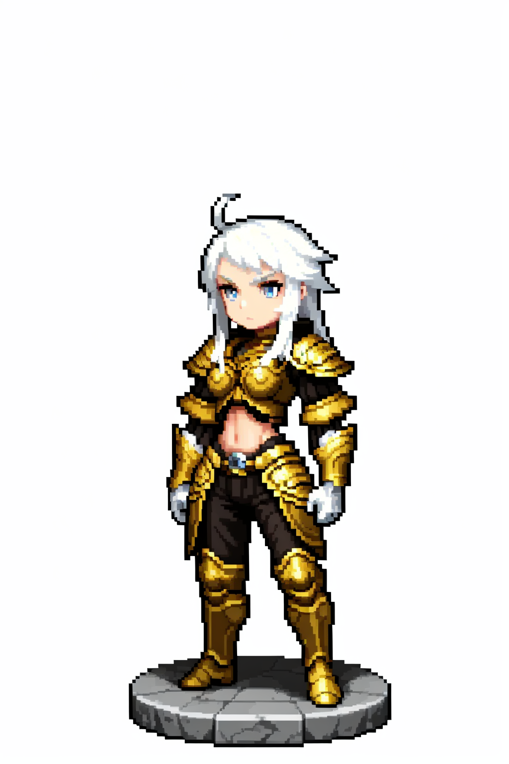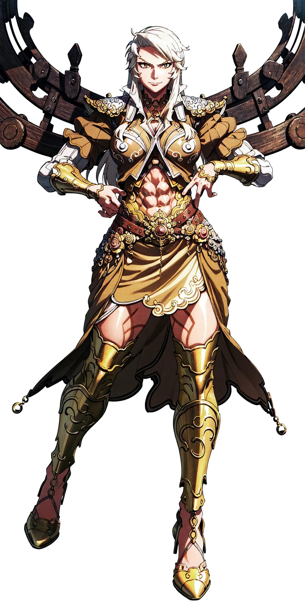 Other prompts : long hair, white hair, armor, navel, midriff