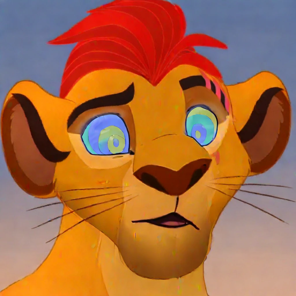 kion, the lion guard, Disney style, hypnotized eyes, identical, dized, kaa eyes hypnotic style.
