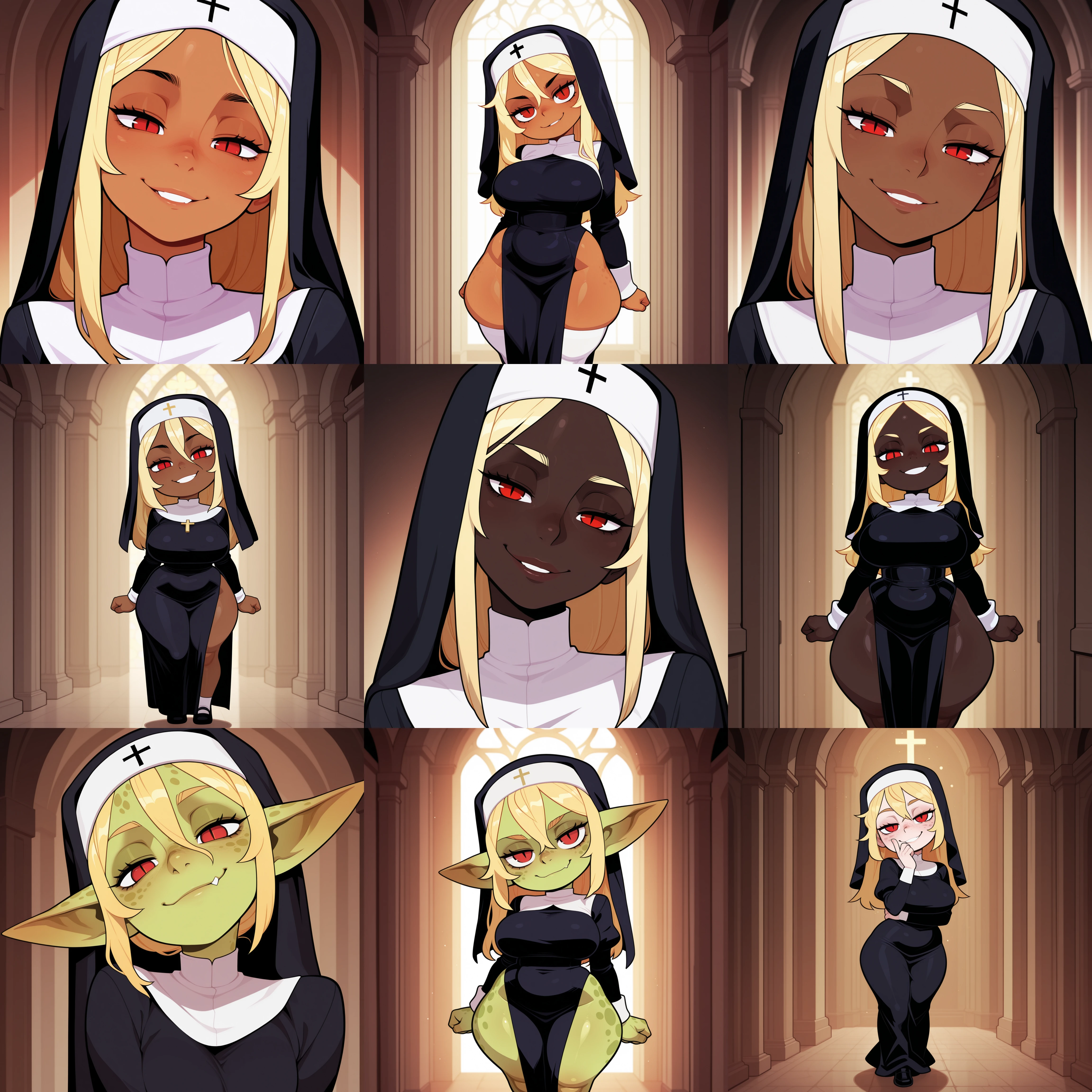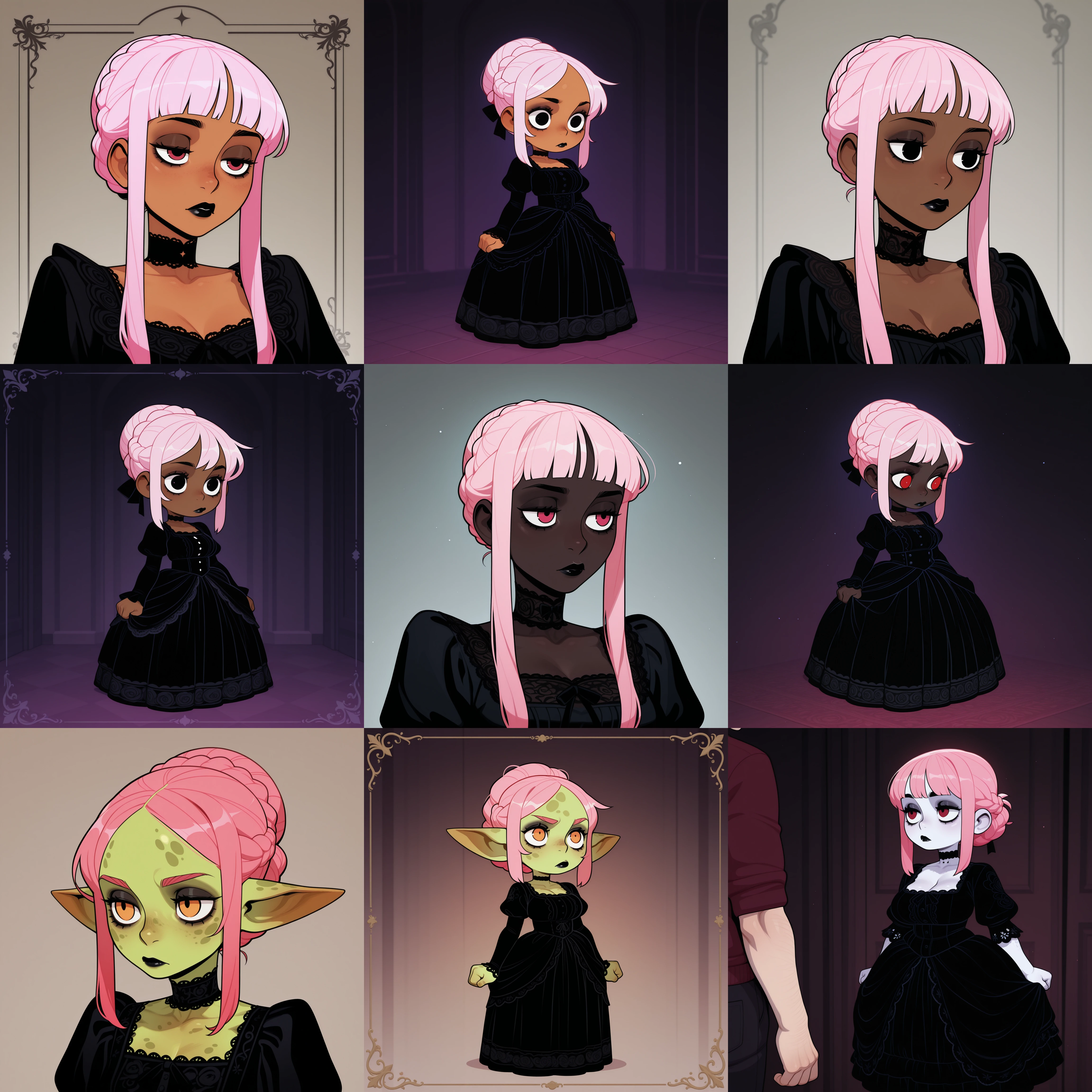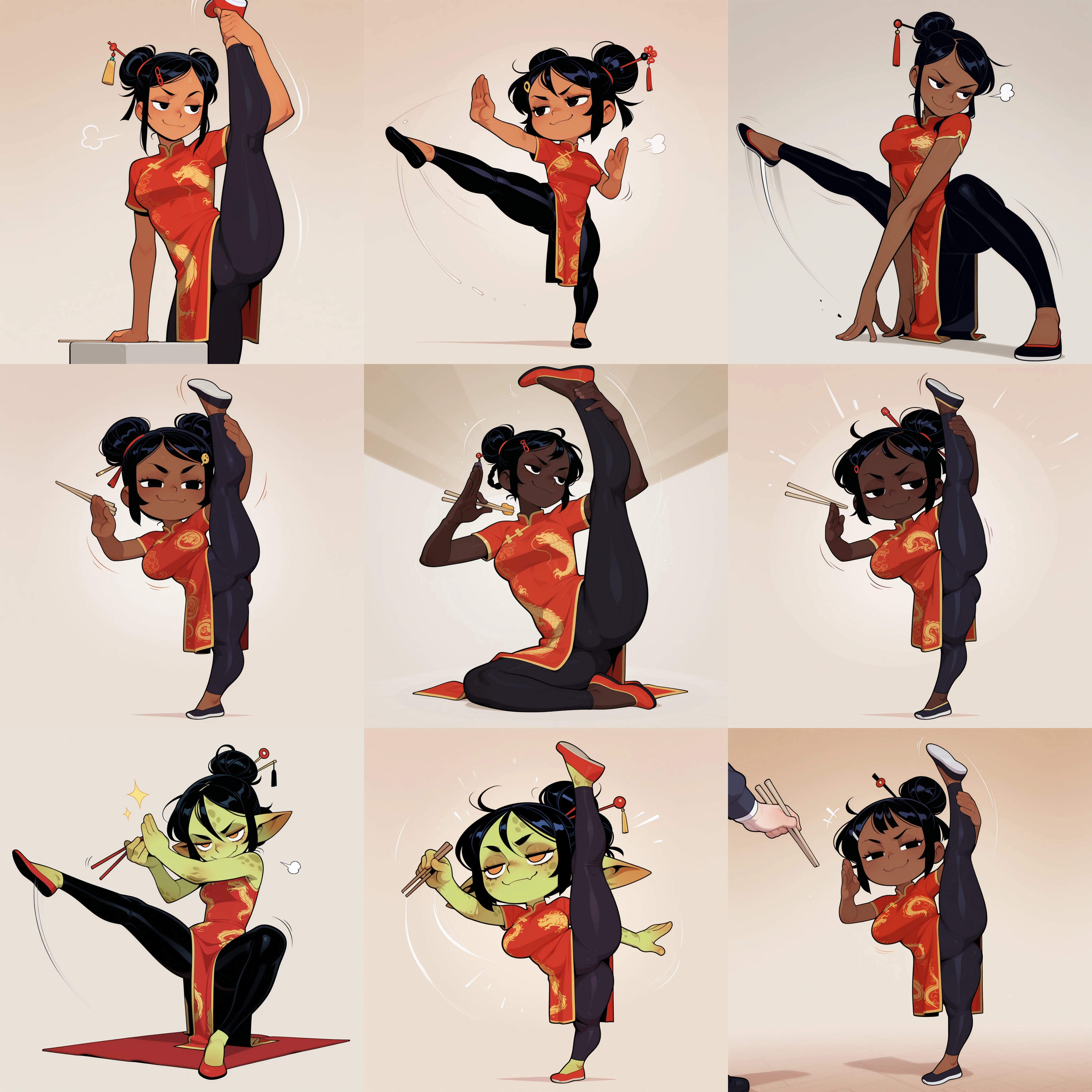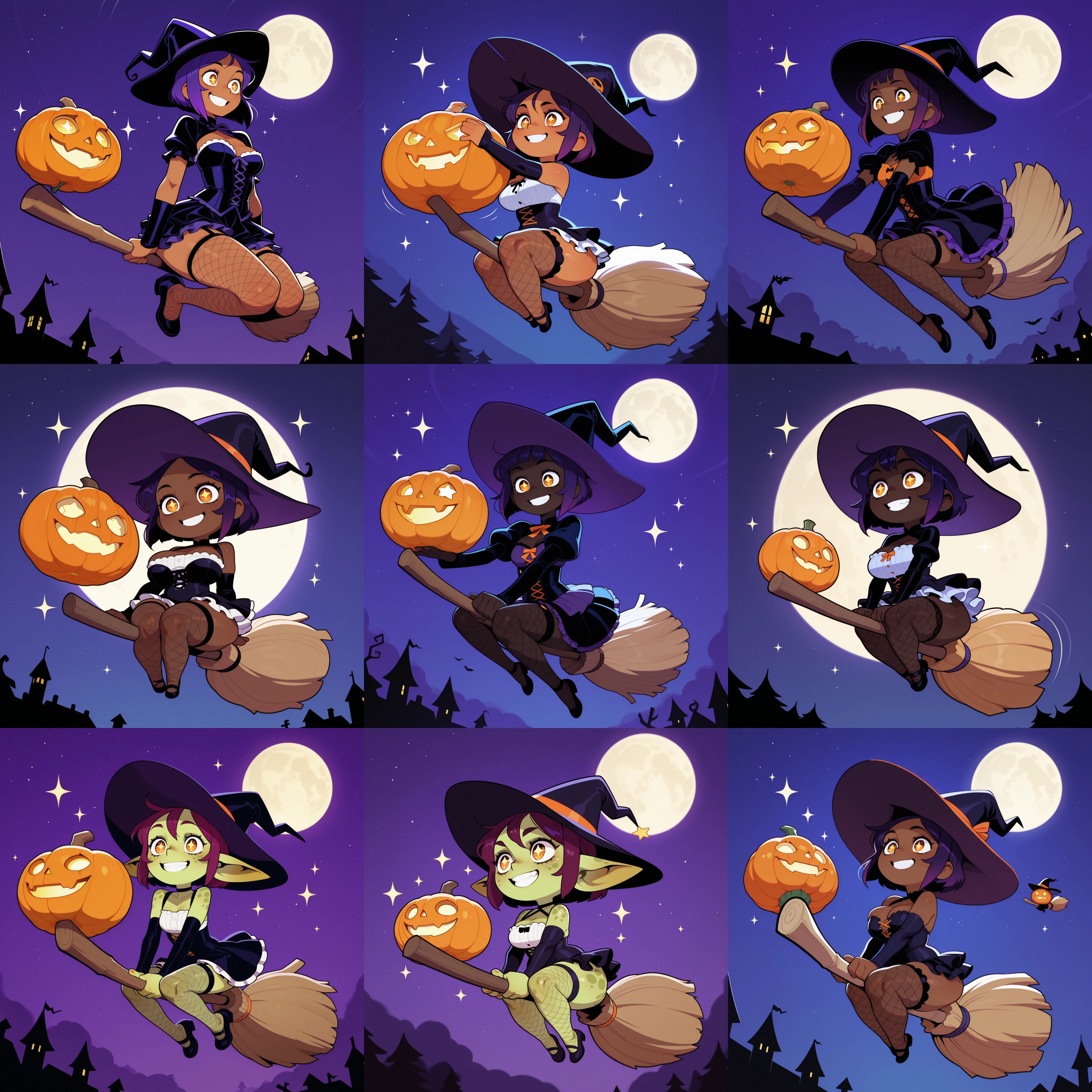 The magic here comes from me trying to enhance my desire for skin tone distinction while also throwing goblin girls into the mix. I wanted to be able to make proper shortstack gobbos, but was disappointed that 'shortstack' as a tag on the checkpoints I use would not do much most of the time. So I split my data set into girls with no skin tone tag. 'tanned' girls, 'dark skin' girls, 'very dark skin' girls and 'green skin, goblin girl, pointy ears, spotted skin, shortstack' girls.