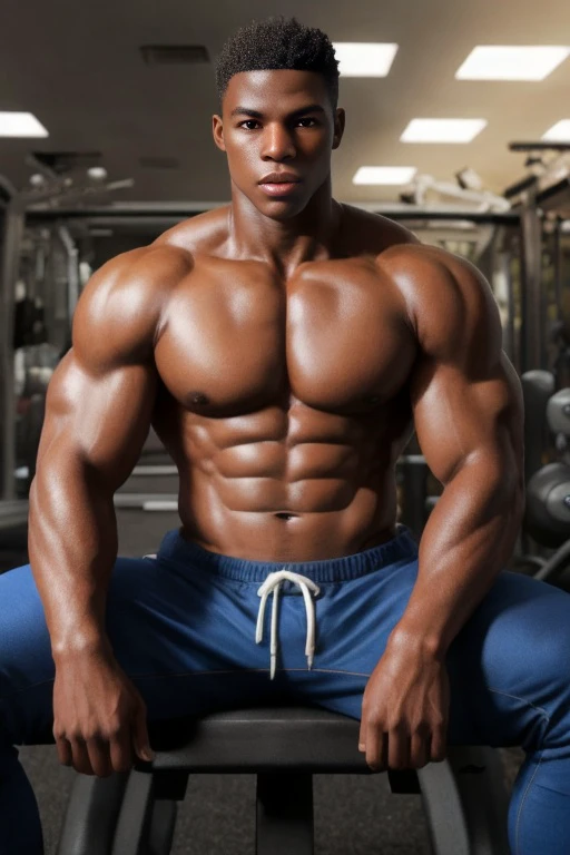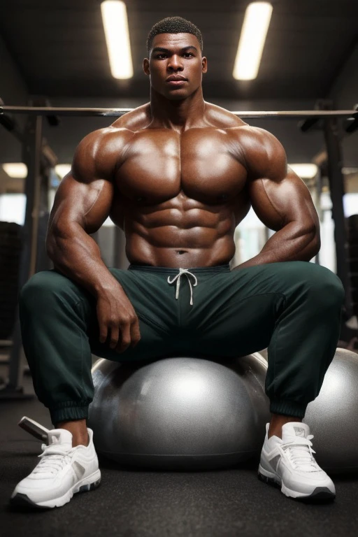 (front view), hyperrealistic, (masterpiece), high details, ultra-realistic, (a [replace here the type] man), shaved, sitting, legs apart, pants, looking at viewer, octan light, 32k, close, blurry background, [location]