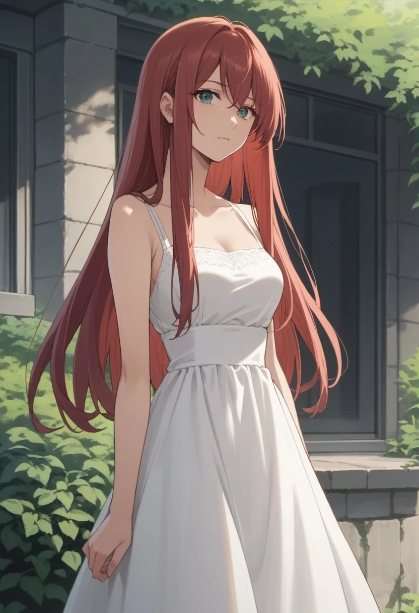 Trigger Words: ebato sanae, long hair, red hair, green eyes