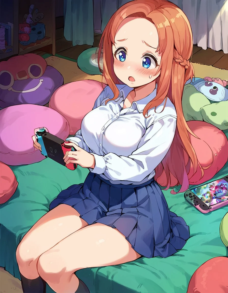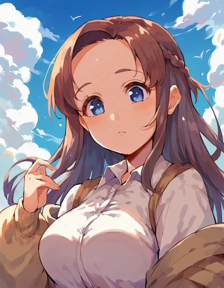 Base tags for Kokoro are: 1girl, brown hair, braid, long hair, forehead, blue eyes, breasts, large breasts