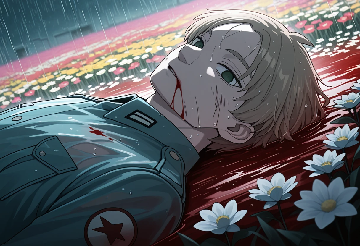 • general_\(spy_x_family\), 1boy, middle_part, male focus, light brown hair, military uniform, military jacket,