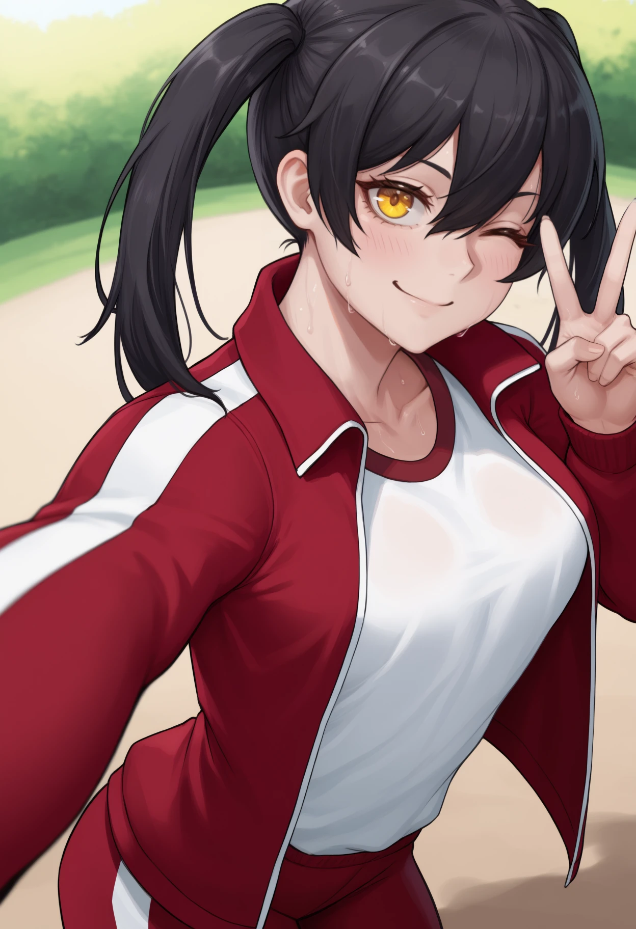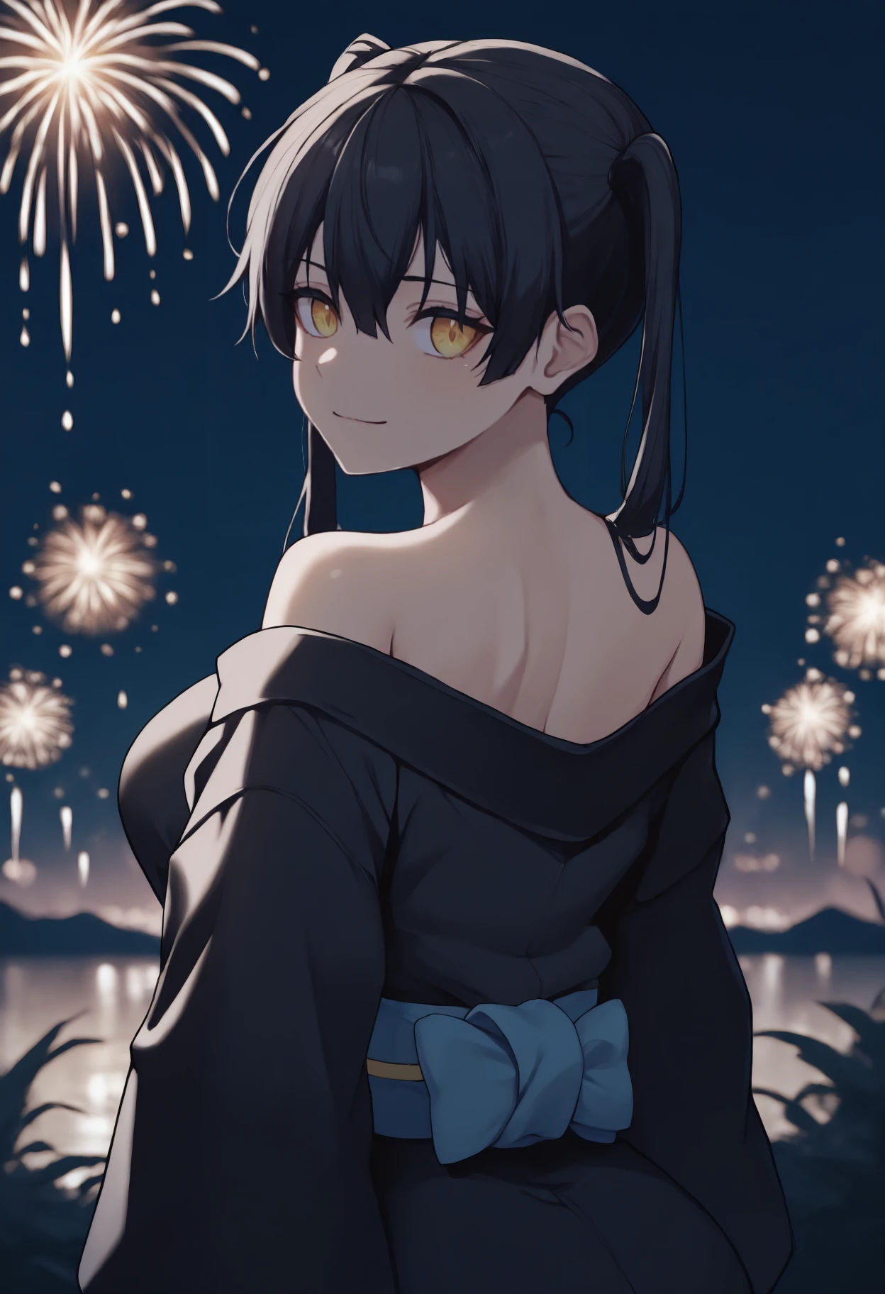 Trigger + Appearance: tmkkts, long hair, black hair, hair between eyes, sidelocks, twintails, yellow eyes
