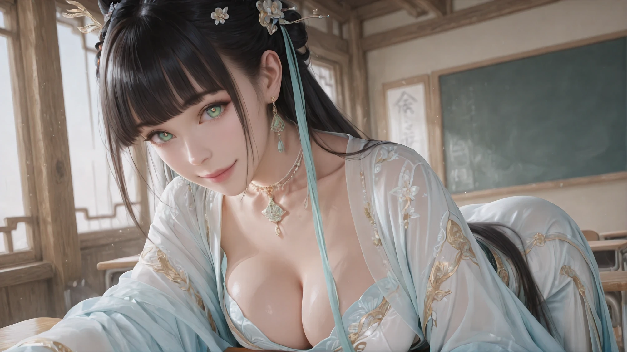 Vespera's Lyric: Where Silk Captures a Dragon's Sigh,blue dress,white dress,chinese clothes,hanfu,jewelry,hair ornament,necklace,earrings,long hair,long sleeves