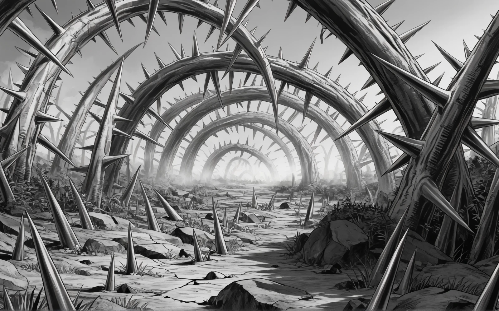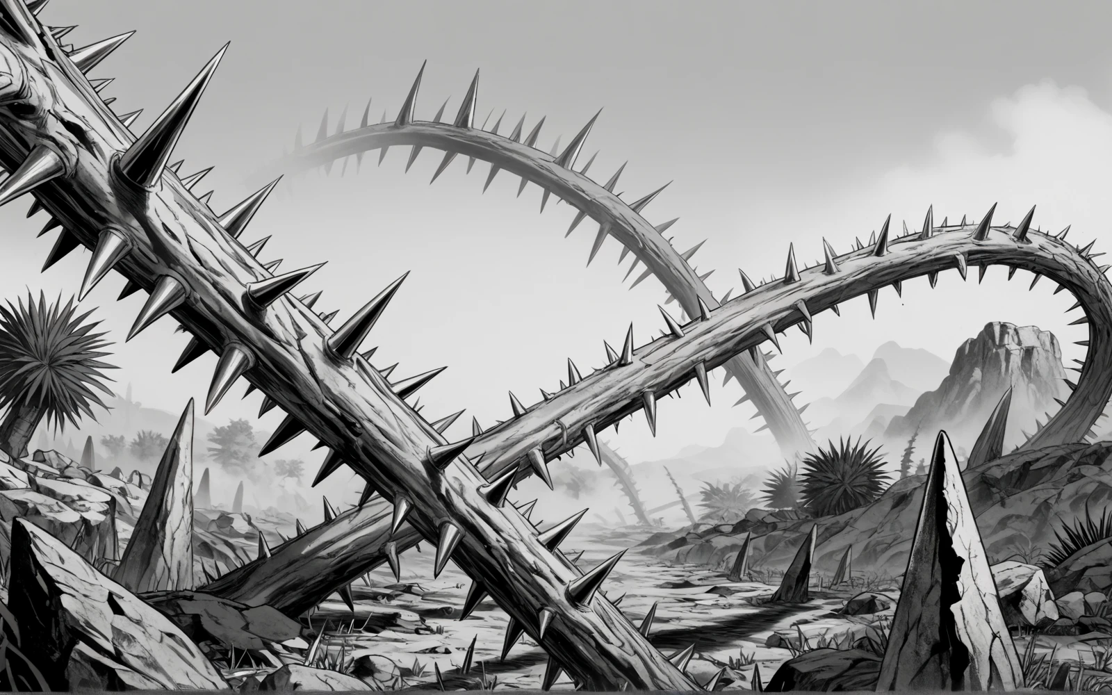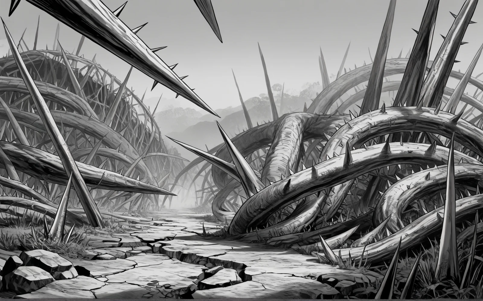 This specific LoRA focuses on hostile spike forests and thorn-filled alien terrain. It is well suited for depicting dangerous worlds, claustrophobic passages, biomechanical or organic environments, underground spike tunnels, and surreal battle locations. The style emphasizes sharp silhouettes, aggressive structures, and strong black-and-white contrast, making it ideal for dramatic and threatening scenes.