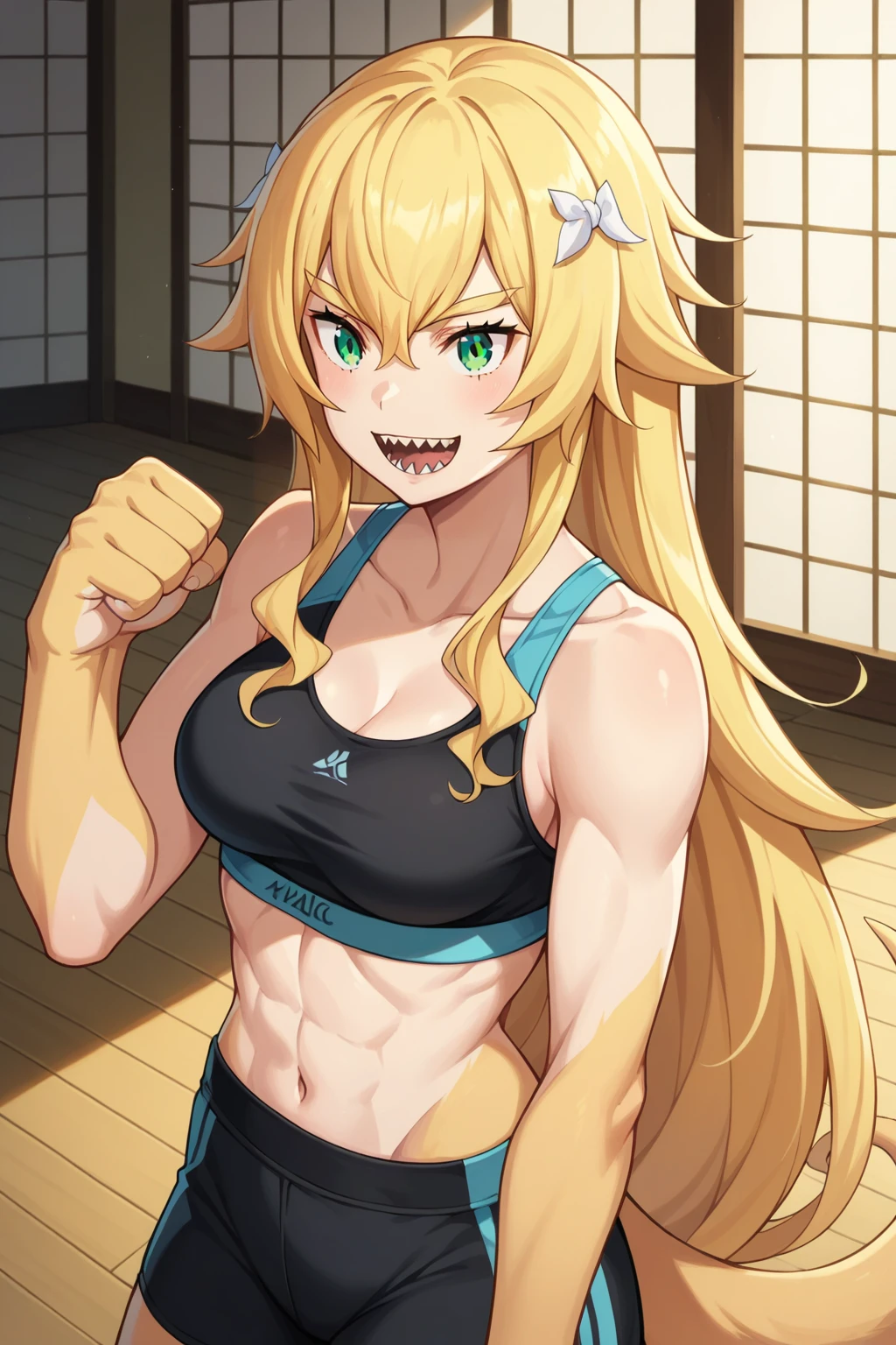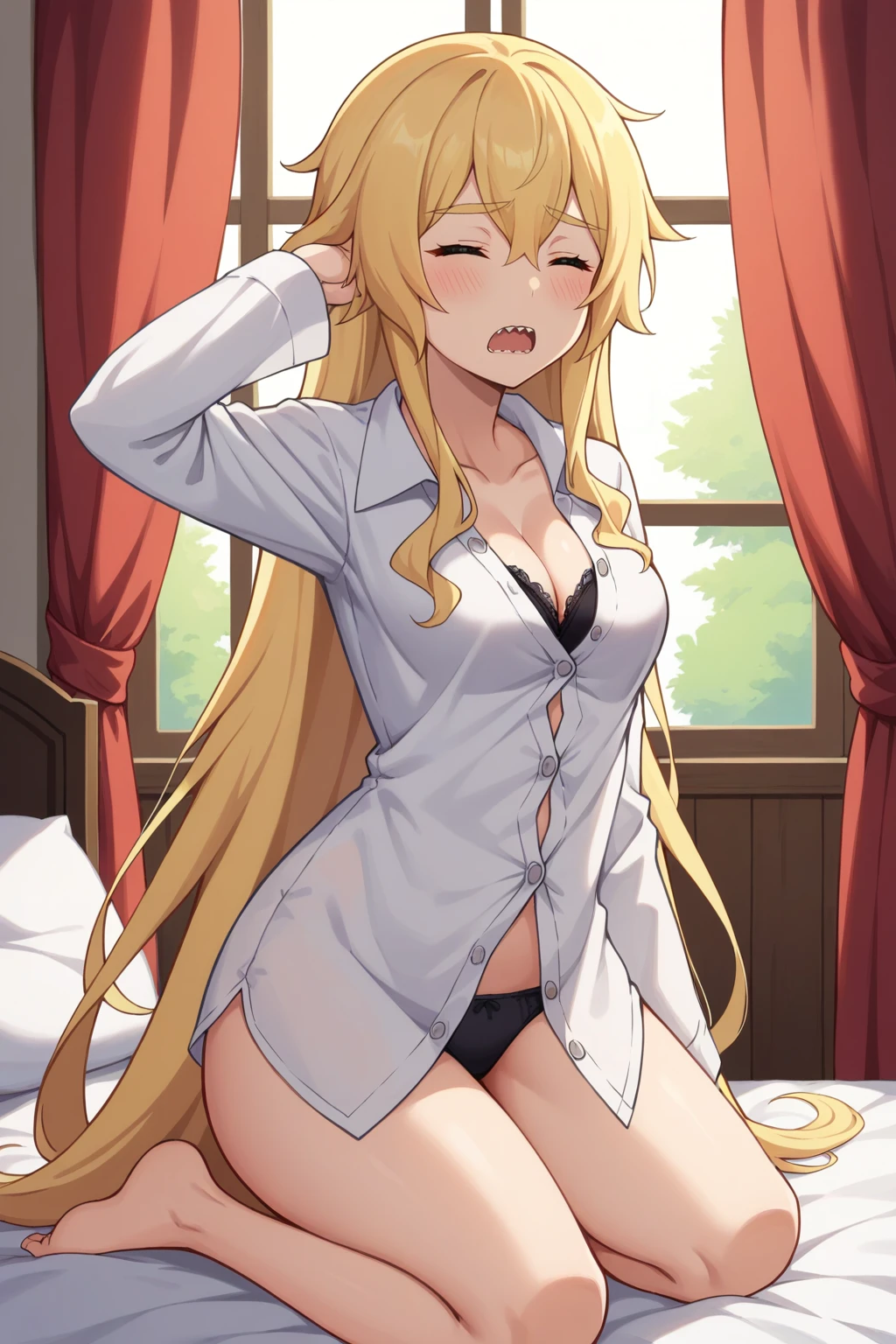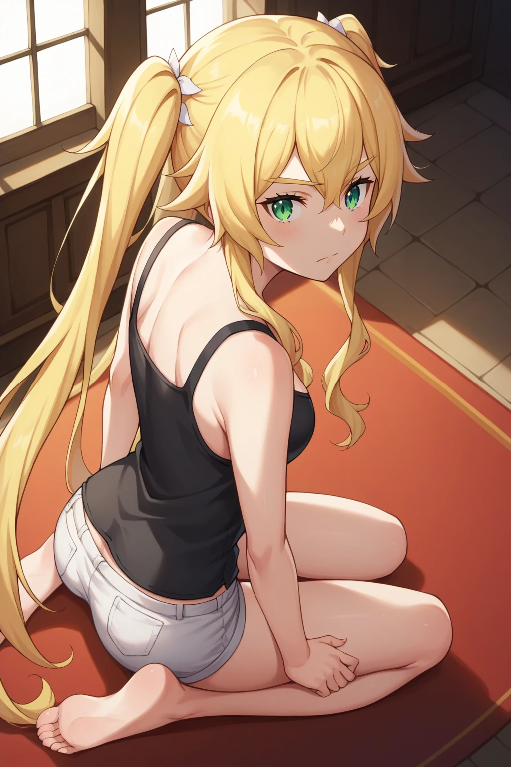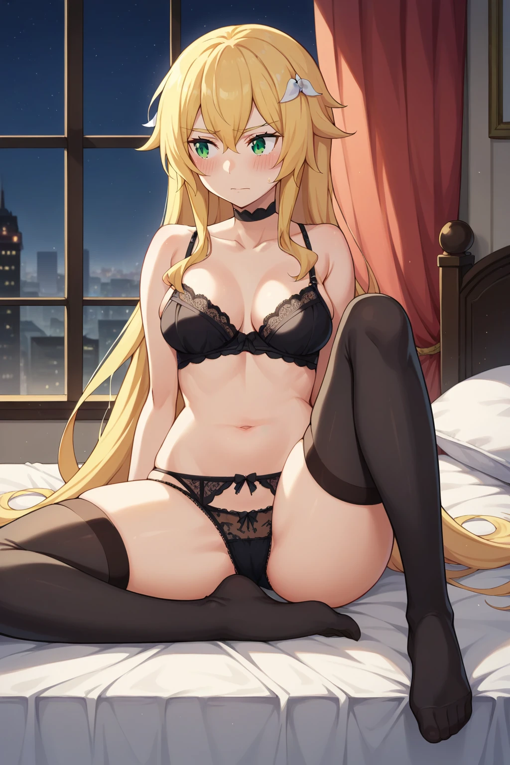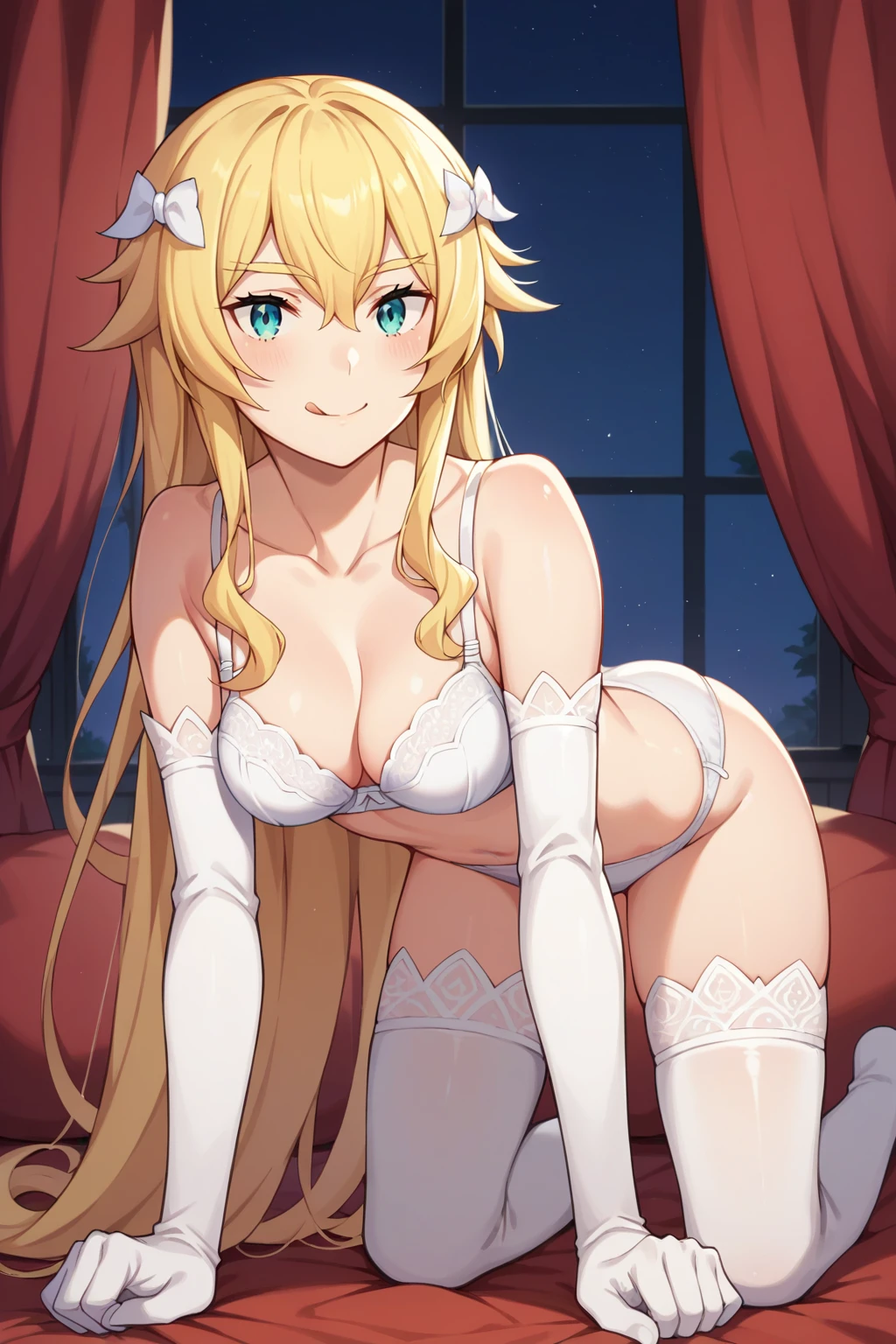 KJOfrederica, blonde hair, green eyes, hair between eyes, very long hair,