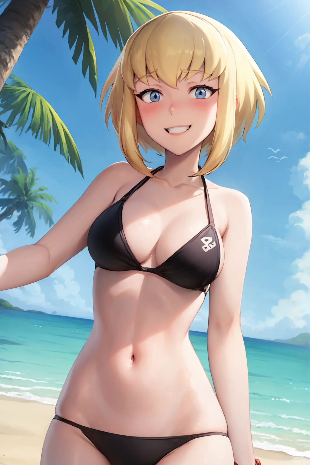 Basic prompts : 1girl, karazorel, blonde hair, blue eyes, short hair