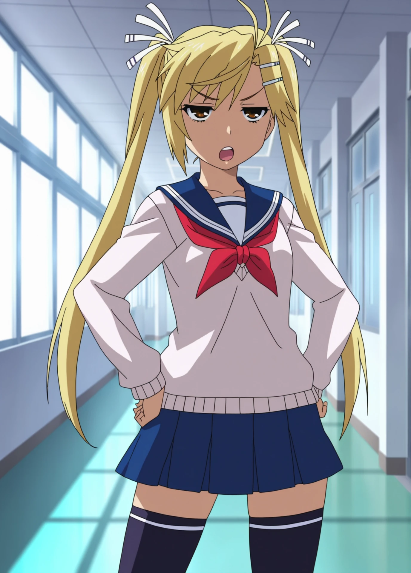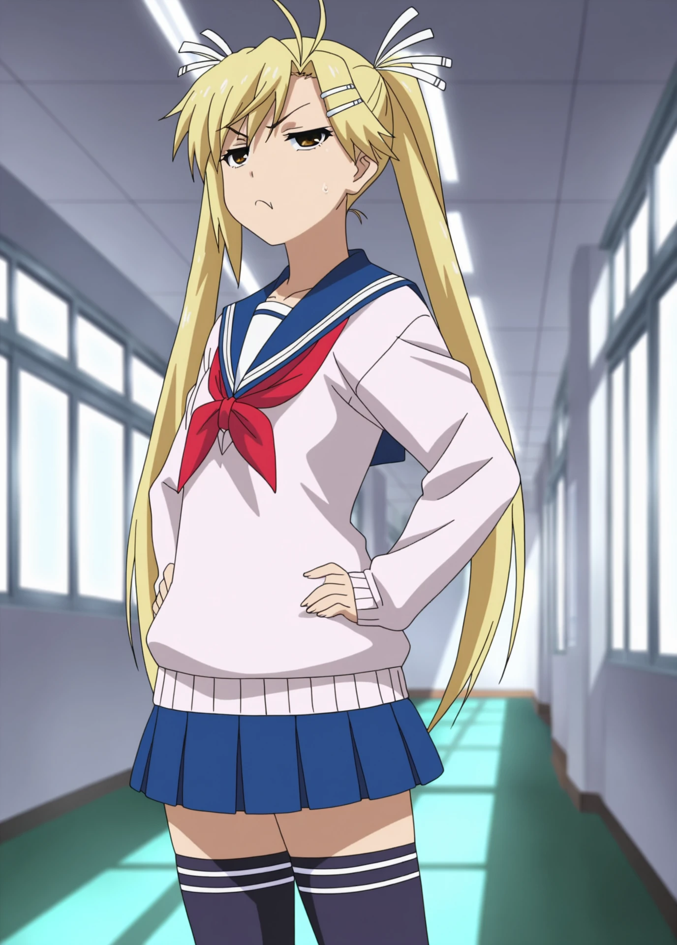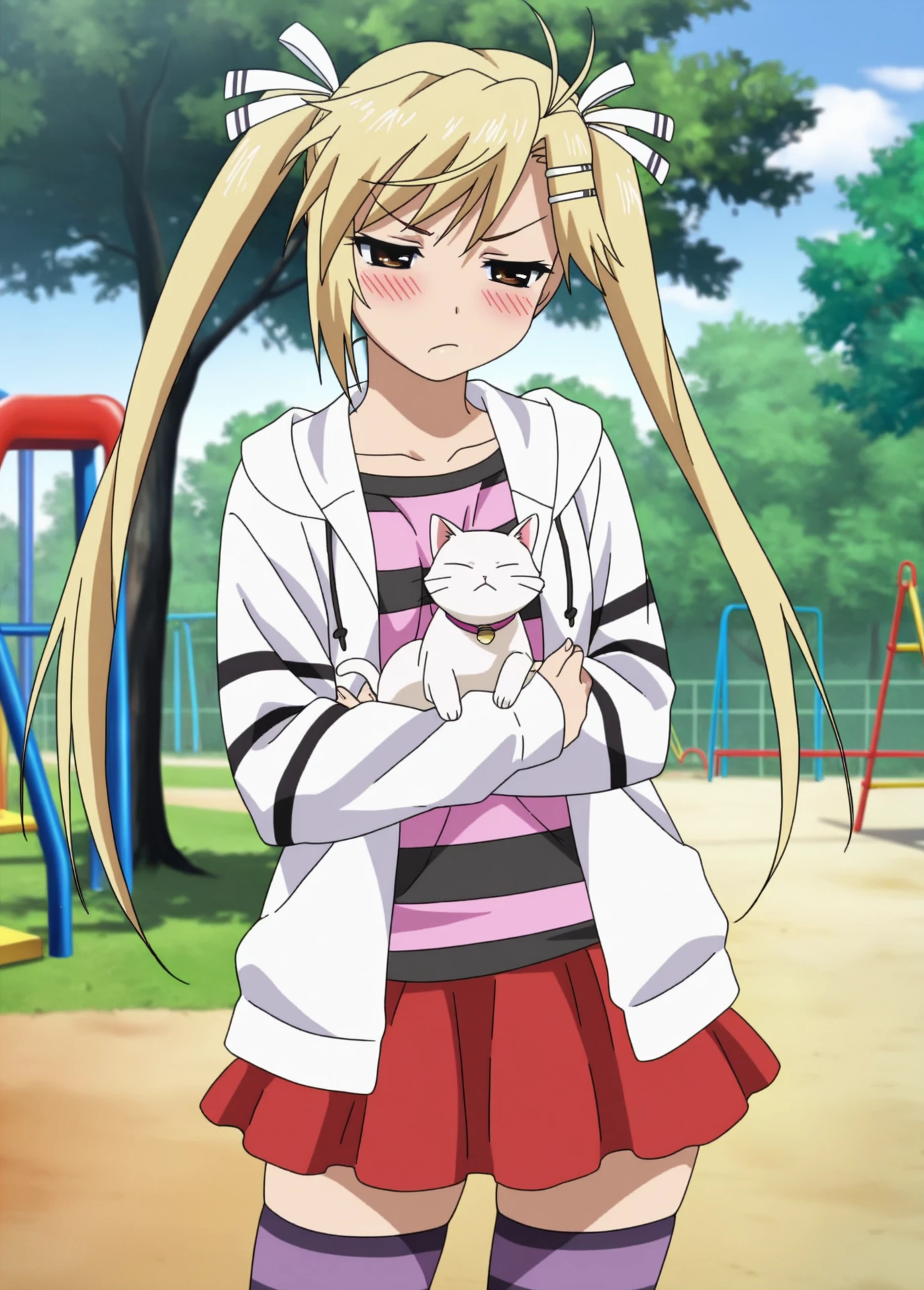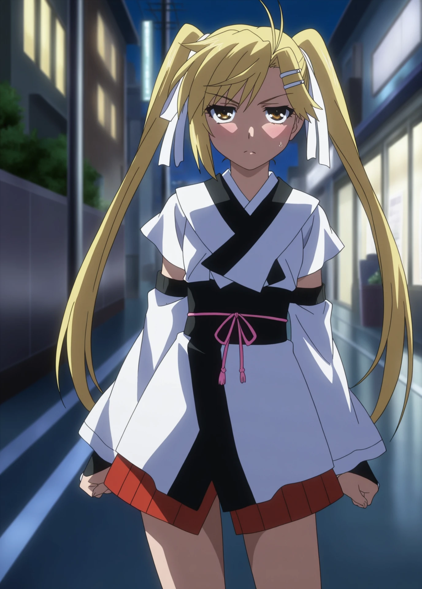 Akari Kirishima, Nyan_koi!, anime_screencap, anime_coloring, young_female, blonde_twintails, brown eyes, small , hair clip, white_hair_ribbon, tsundere,