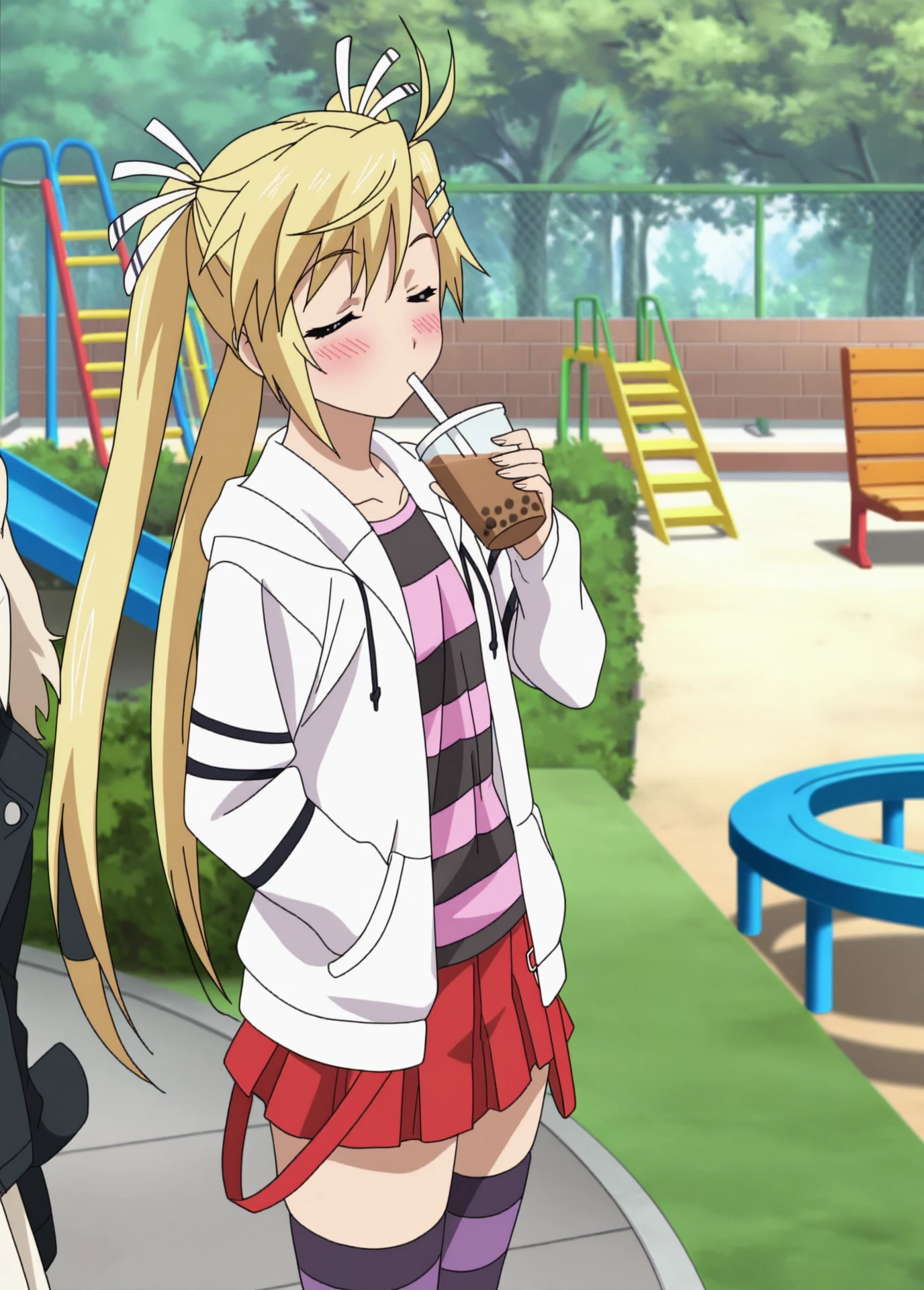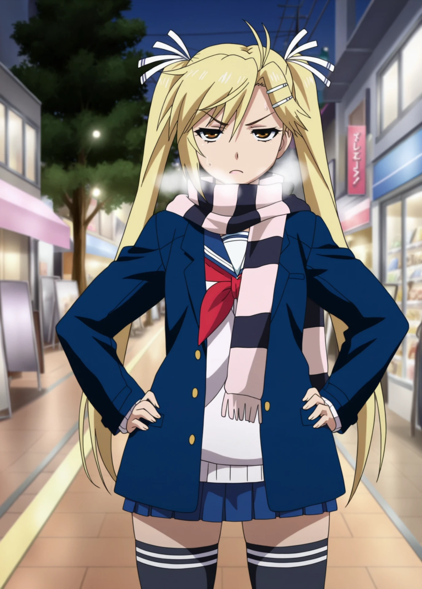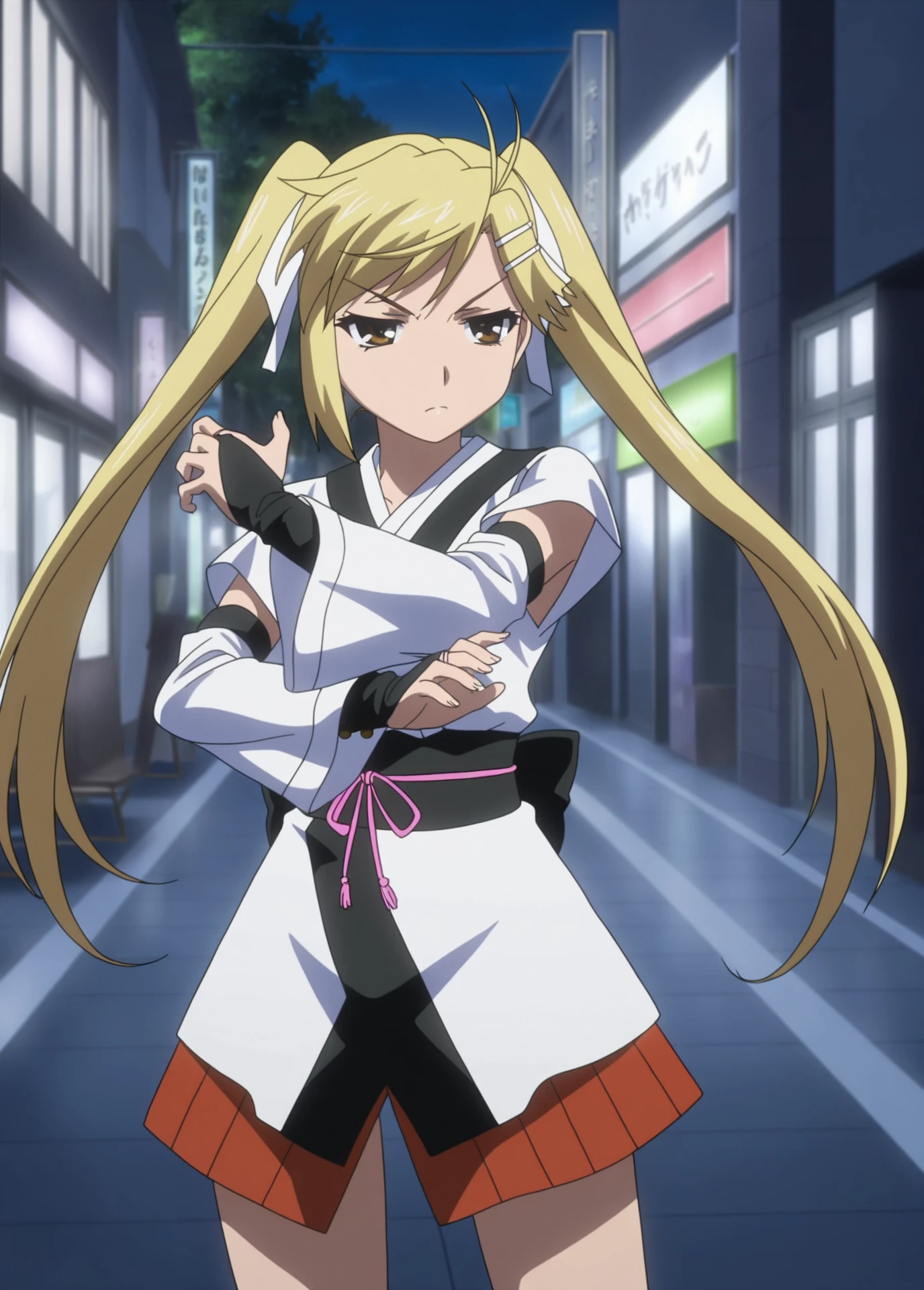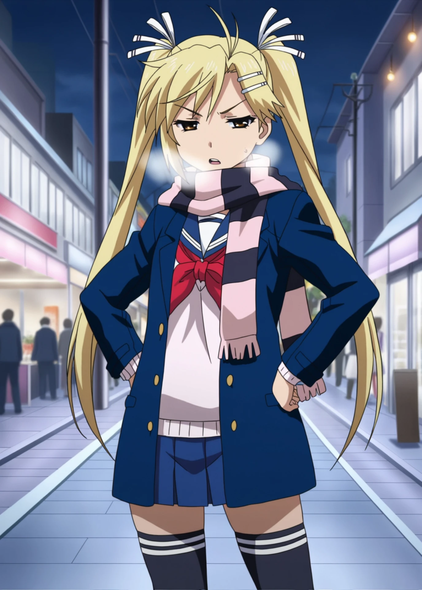 Akari Kirishima, Nyan_koi!, anime_screencap, anime_coloring, young_female, blonde_twintails, brown eyes, small , hair clip, white_hair_ribbon, tsundere,