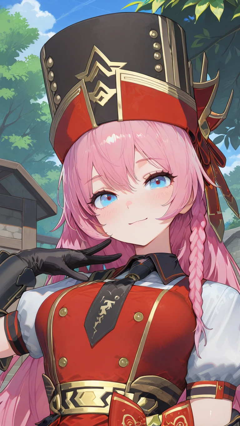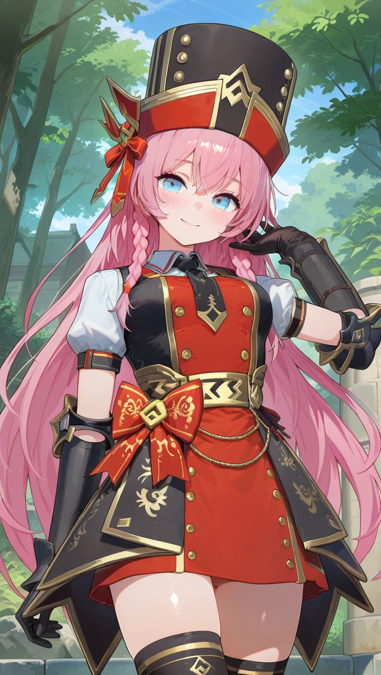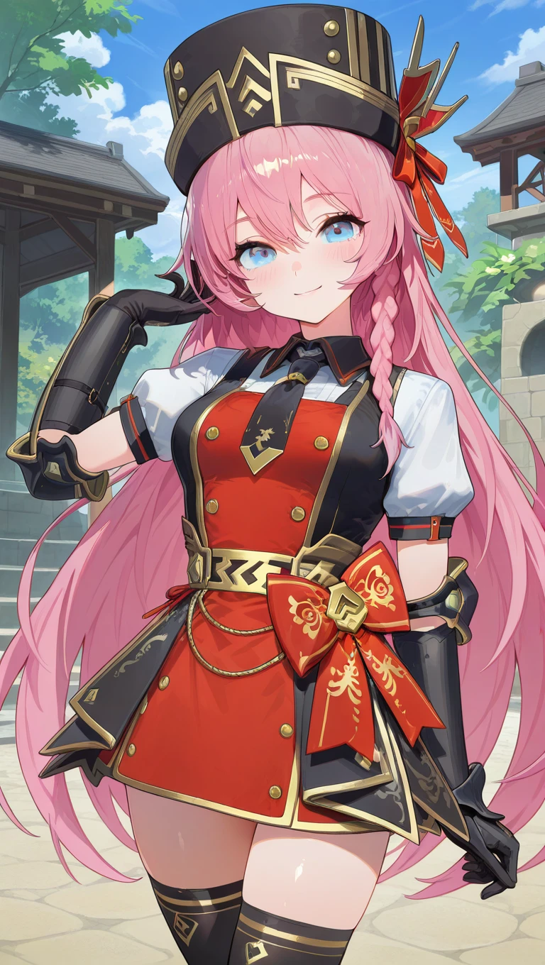 hat,black headwear,very long hair,pink hair,braid,hair between eyes,blue eyes