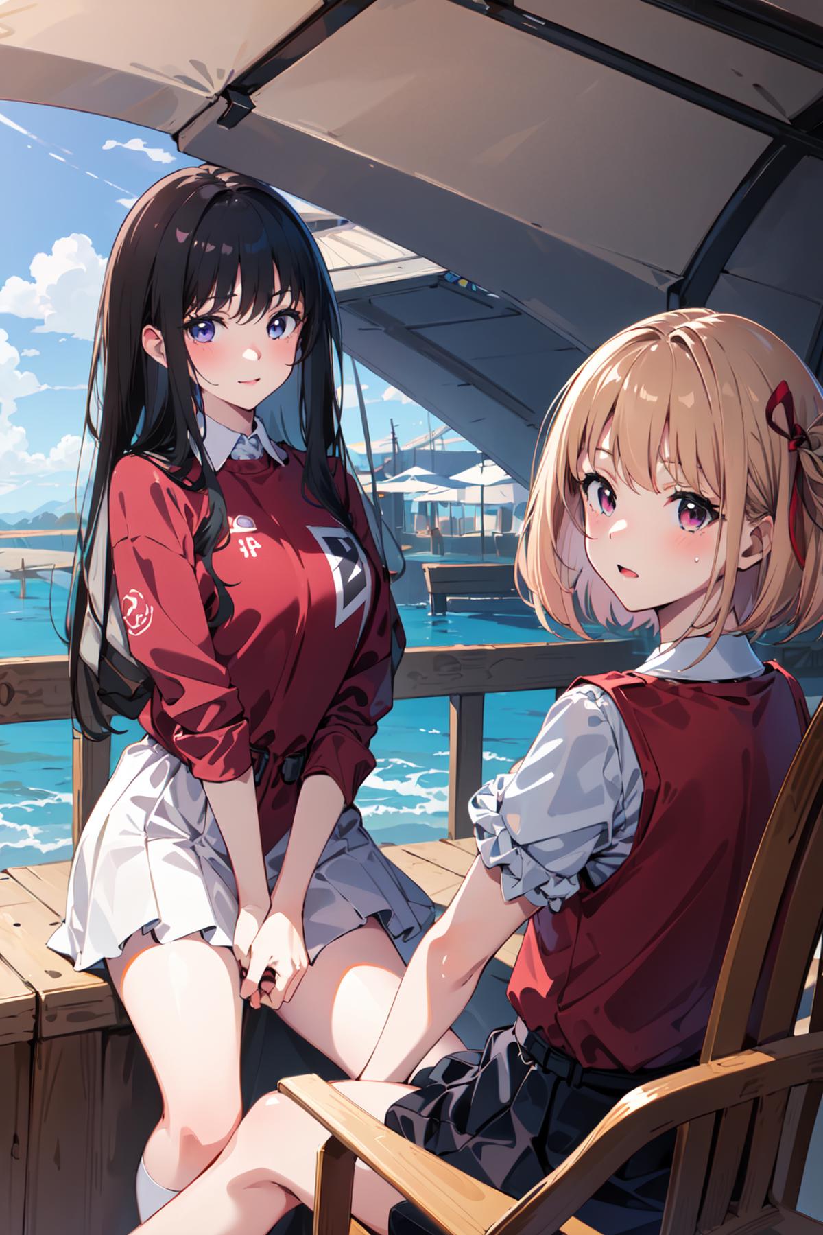 (masterpiece:1.2), best quality,pixiv,Chisato and Takina,