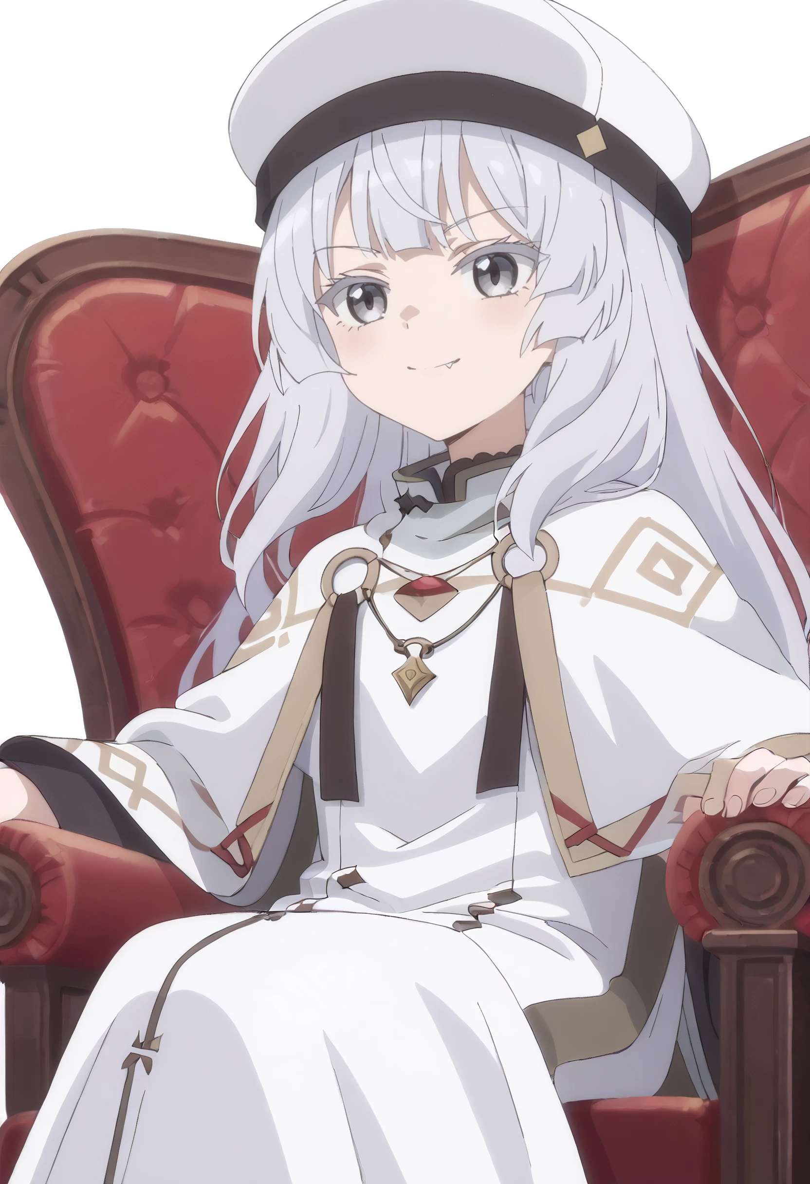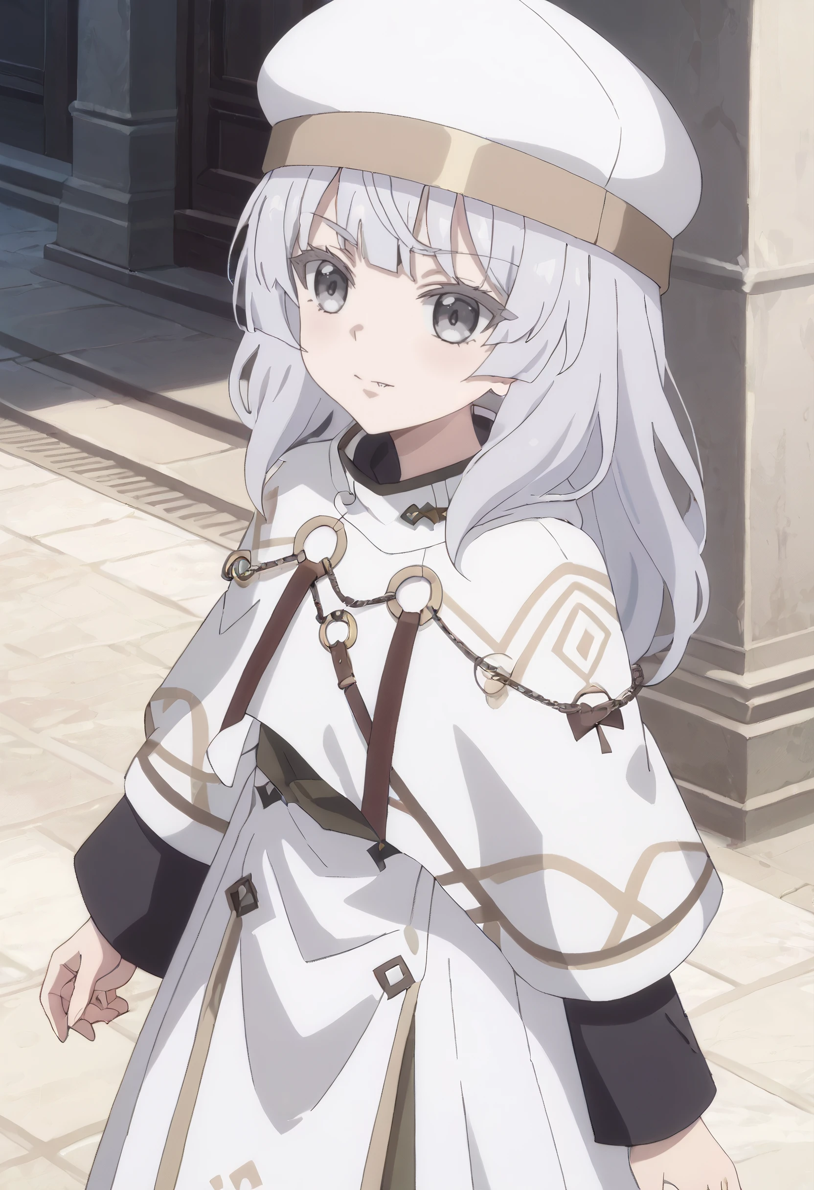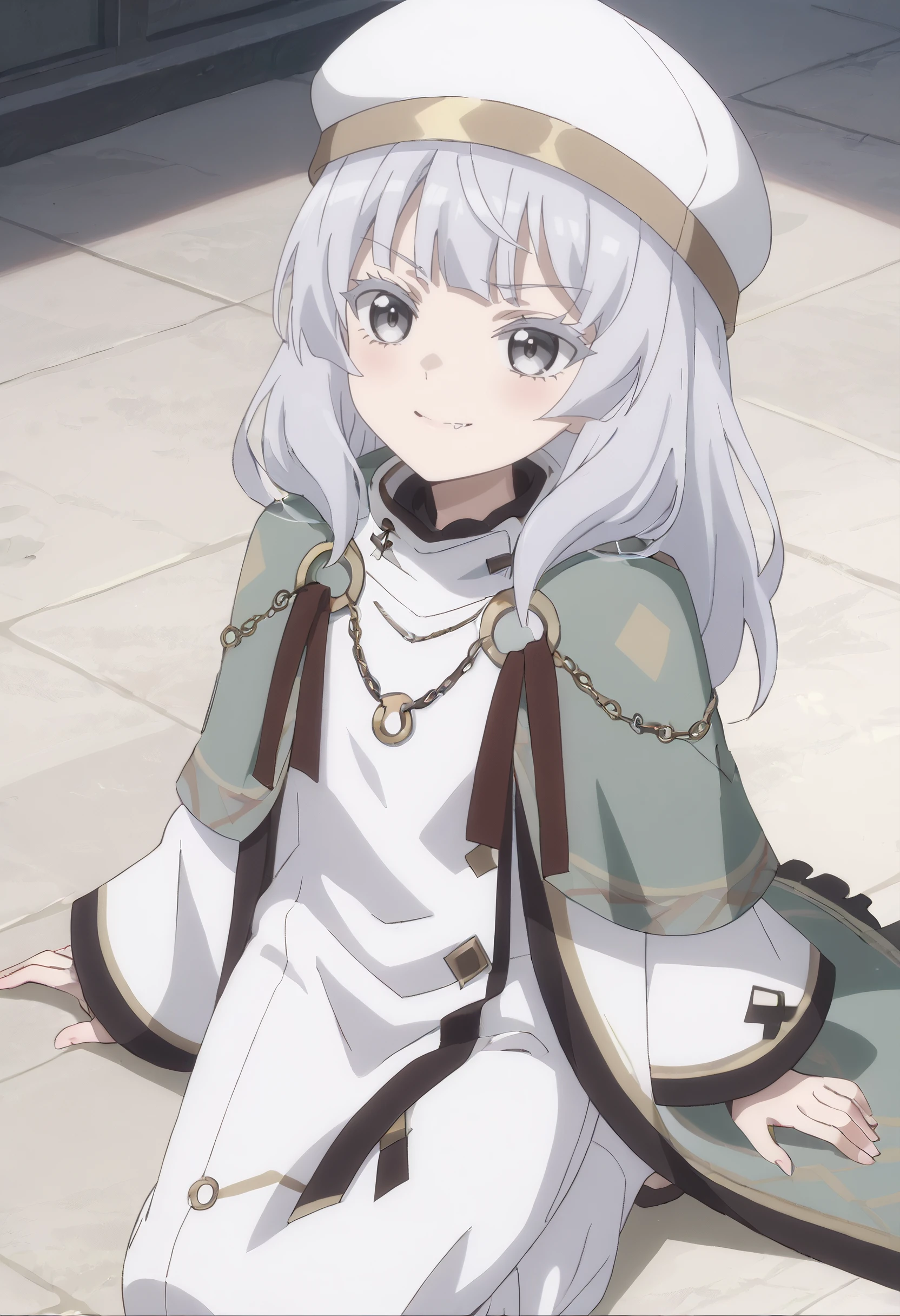 ChloeOutfit, hat, white headwear, wide sleeves, long sleeves, dress, necklace, capelet, robe,