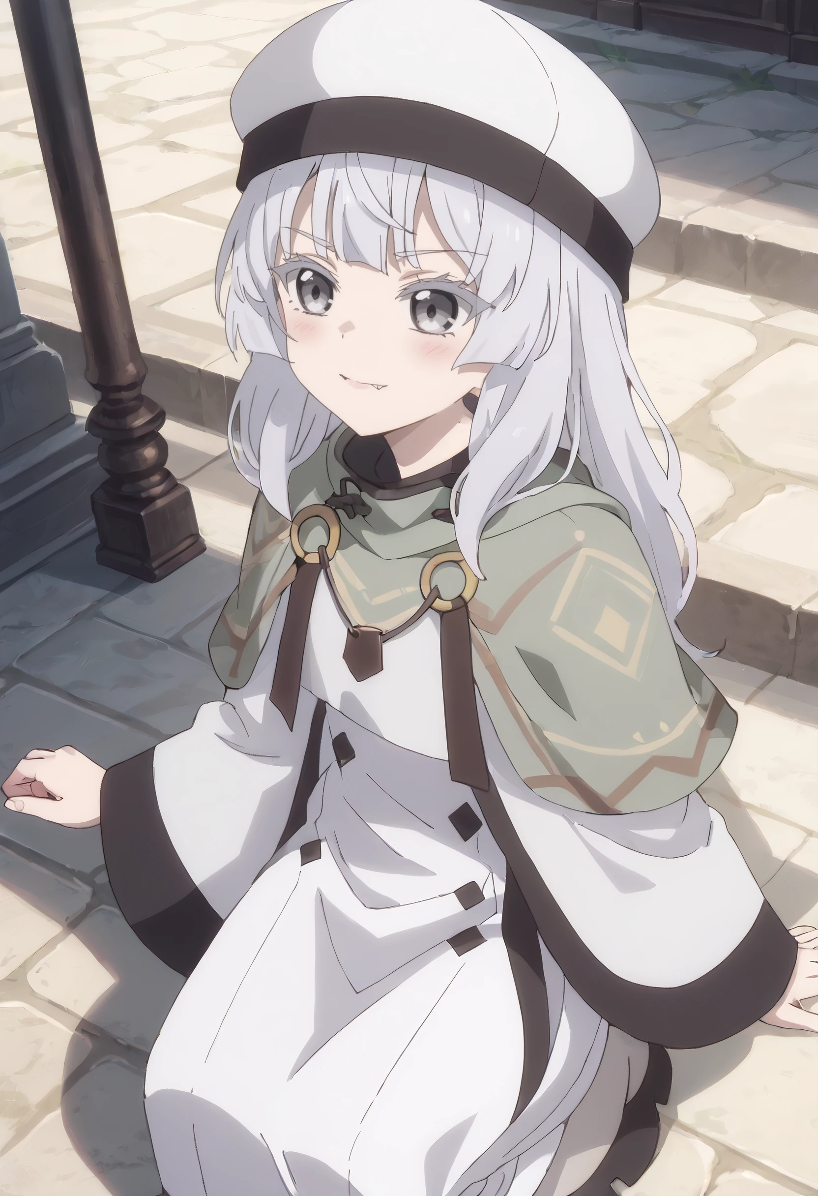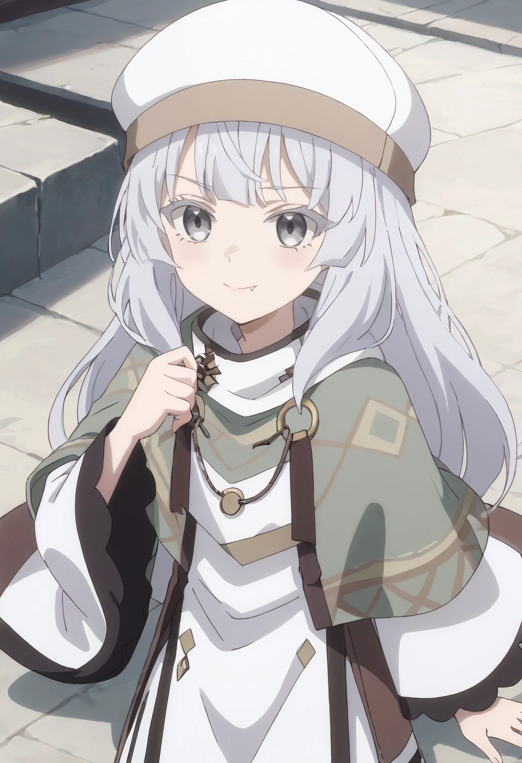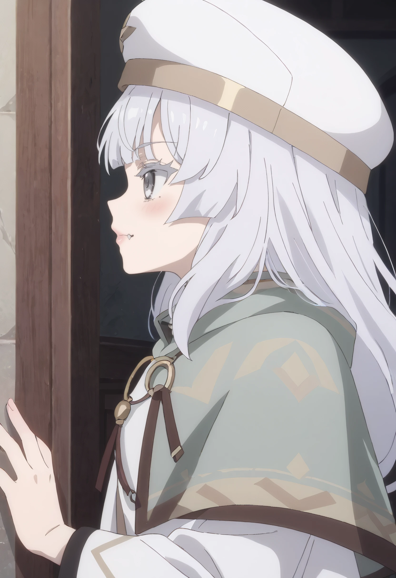 ChloeOutfit, hat, white headwear, wide sleeves, long sleeves, dress, necklace, capelet, robe,
