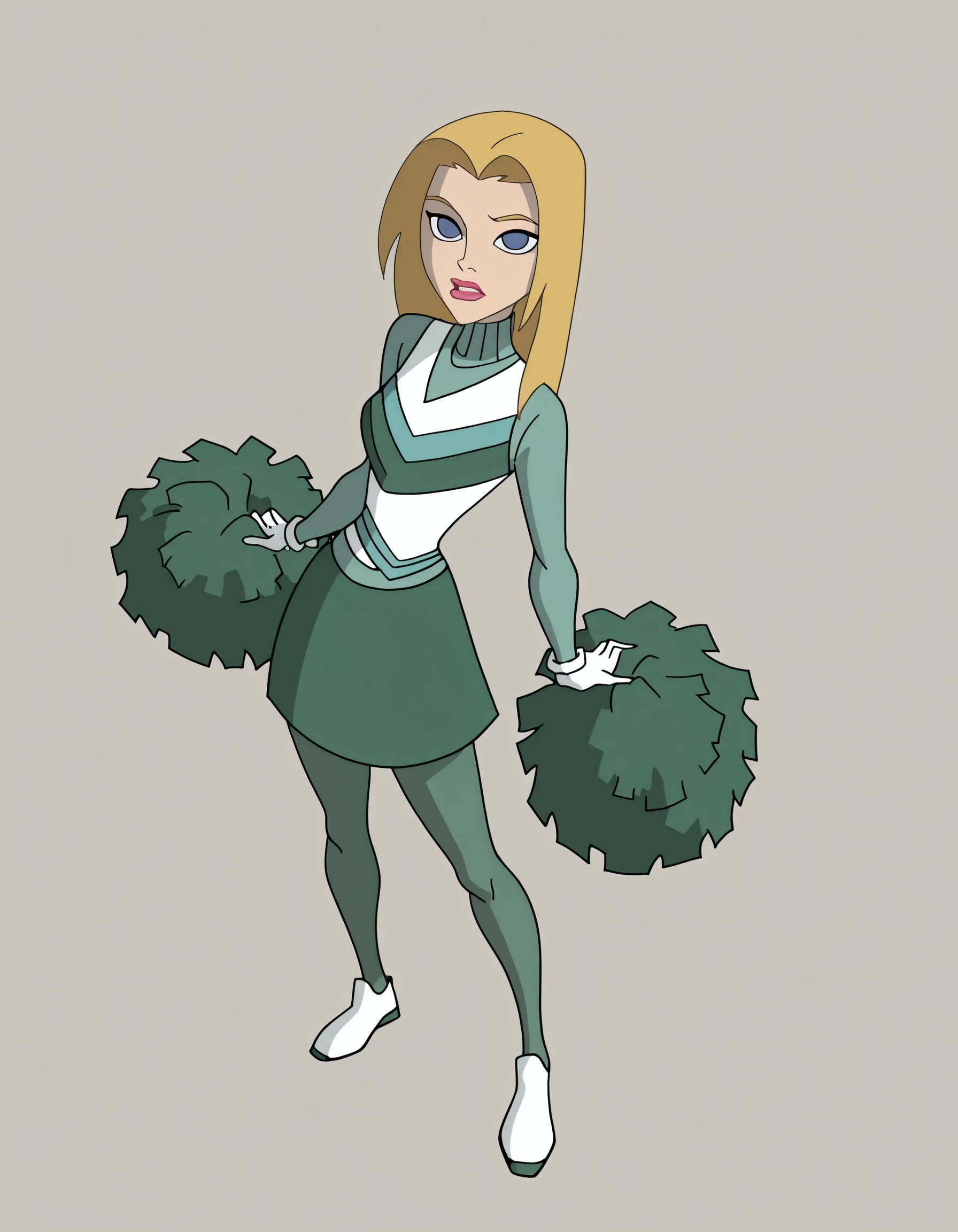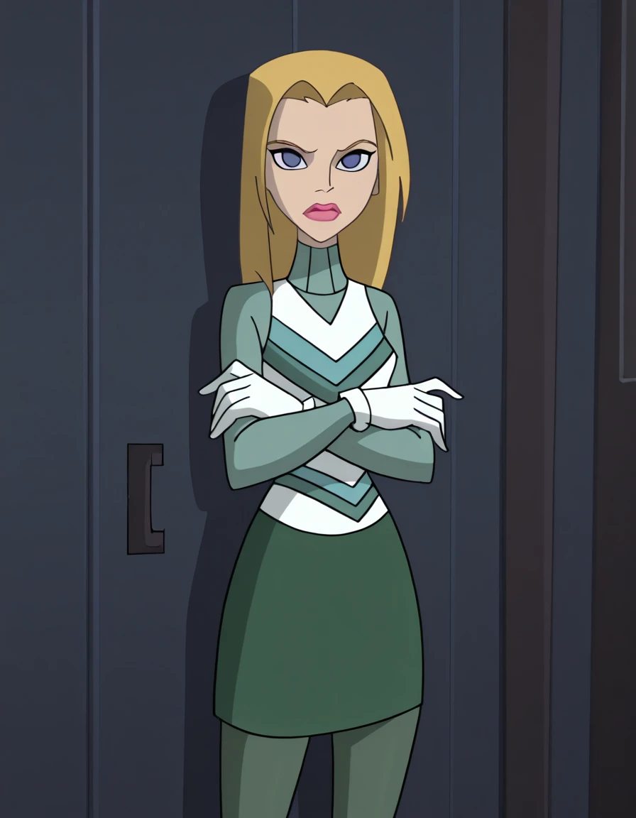 turtleneck, long sleeves, green skirt, white gloves
