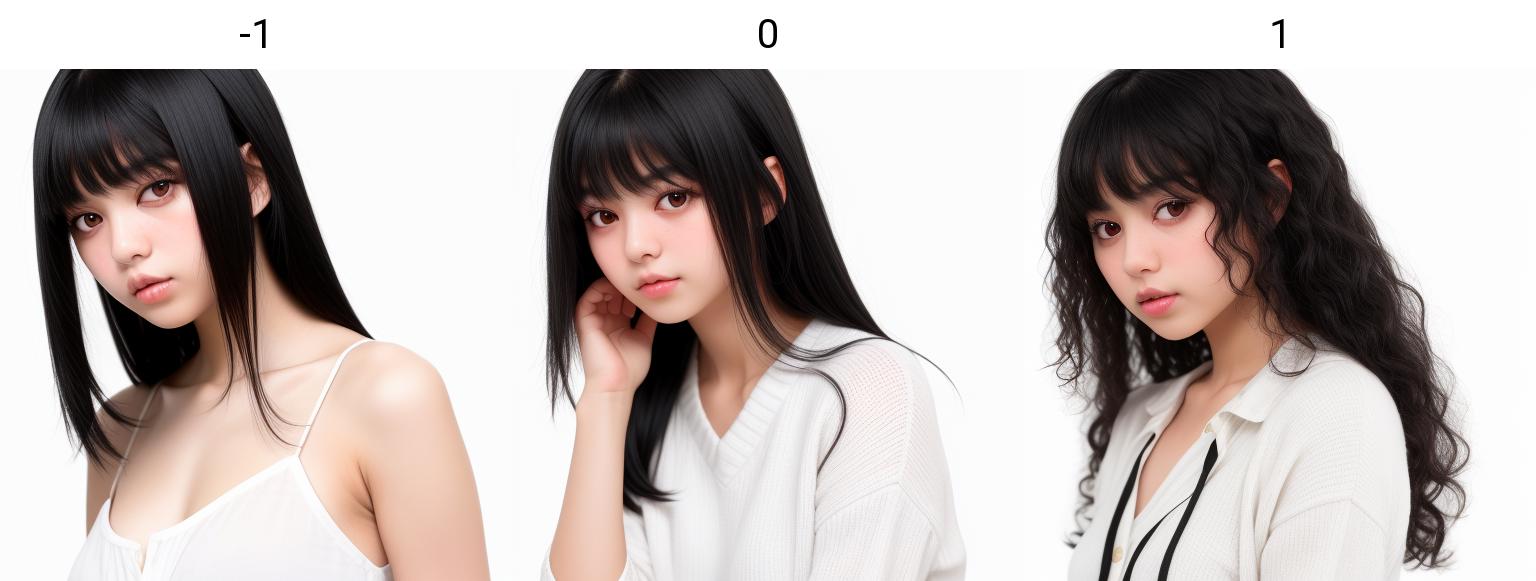 You can go for higher weights, but not recommended. +5 Too much curly hair may mislead the model into drawing dreamy characters. -5 Too much straight hair, well...you will see a face covered with straight hair.