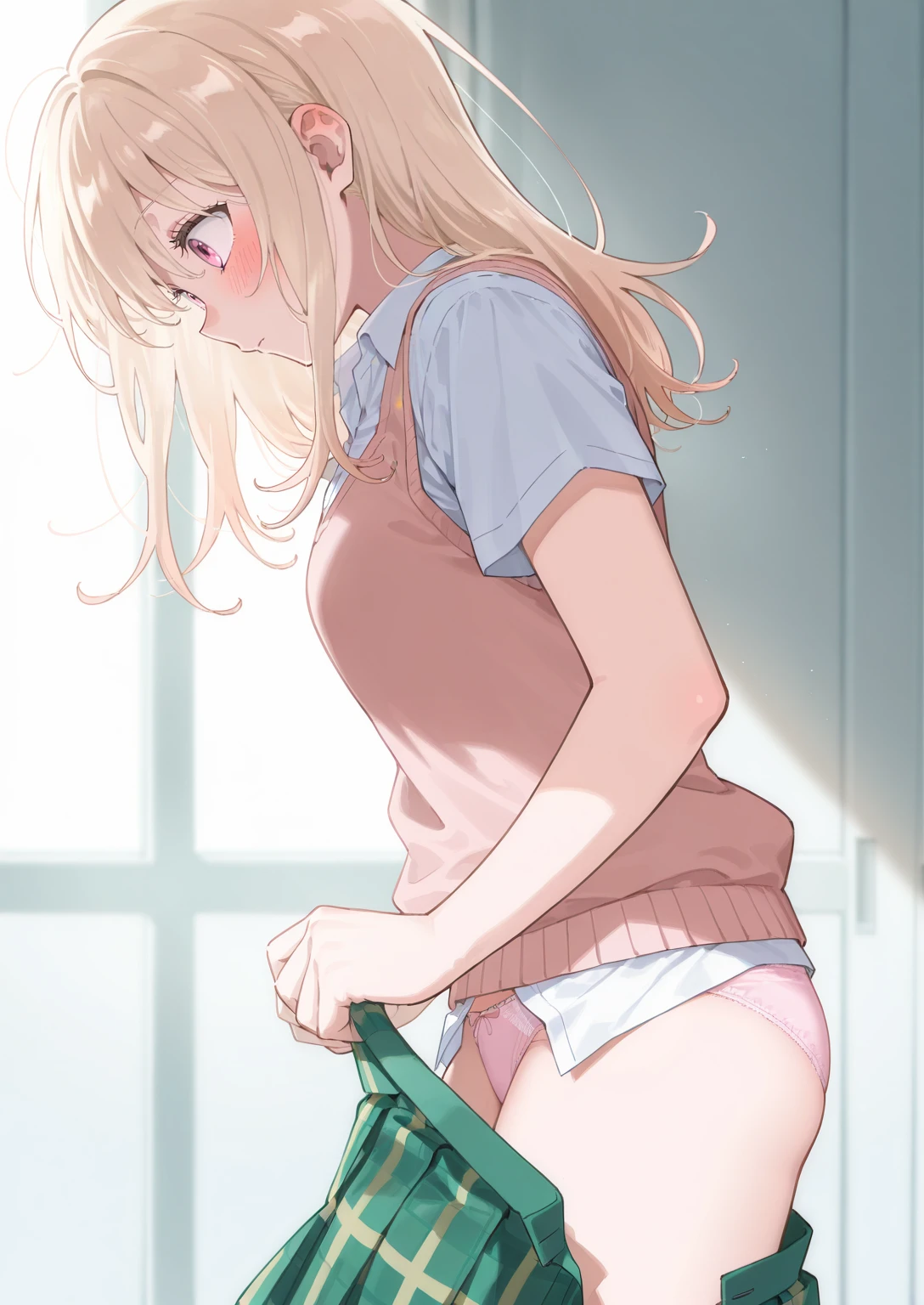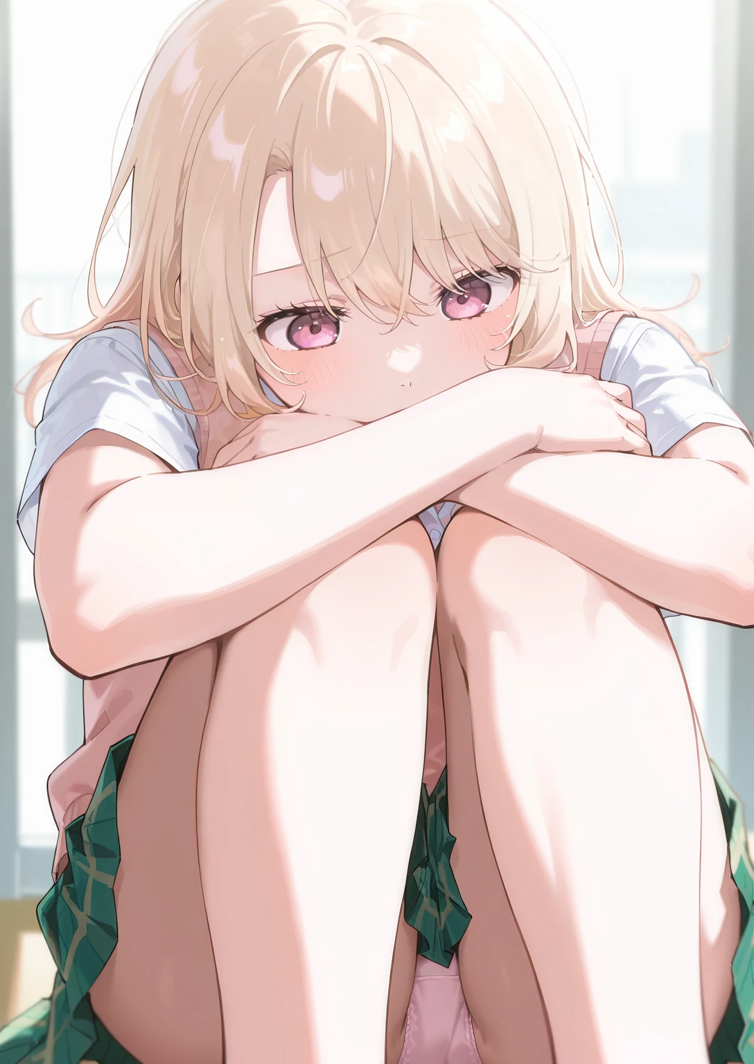 Apperance: ilkawaimona, long hair, blonde hair, pink eyes