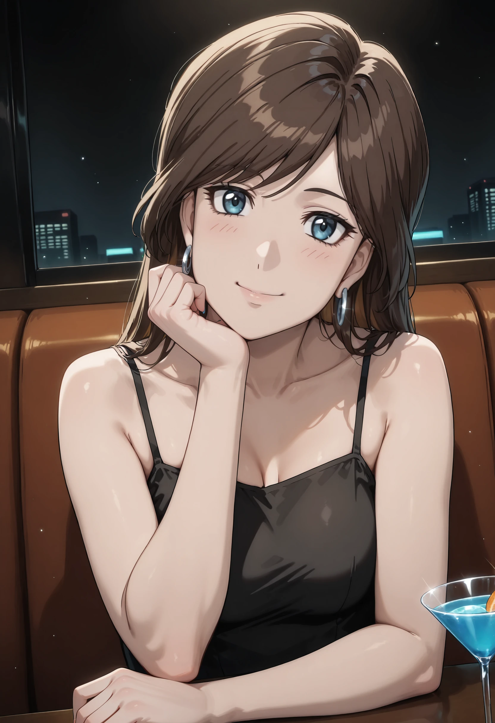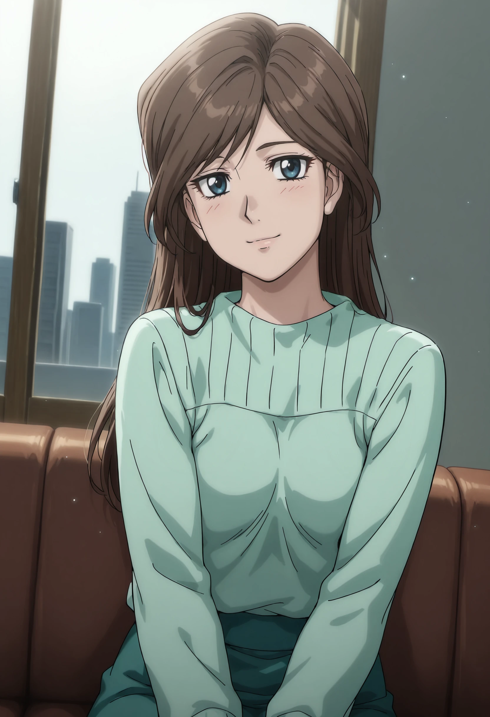 ippokyouka, brown hair, long hair, blue eyes