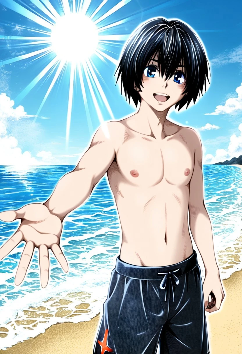 Hiro from DARLING in the FRANXX, black hair, blue eyes