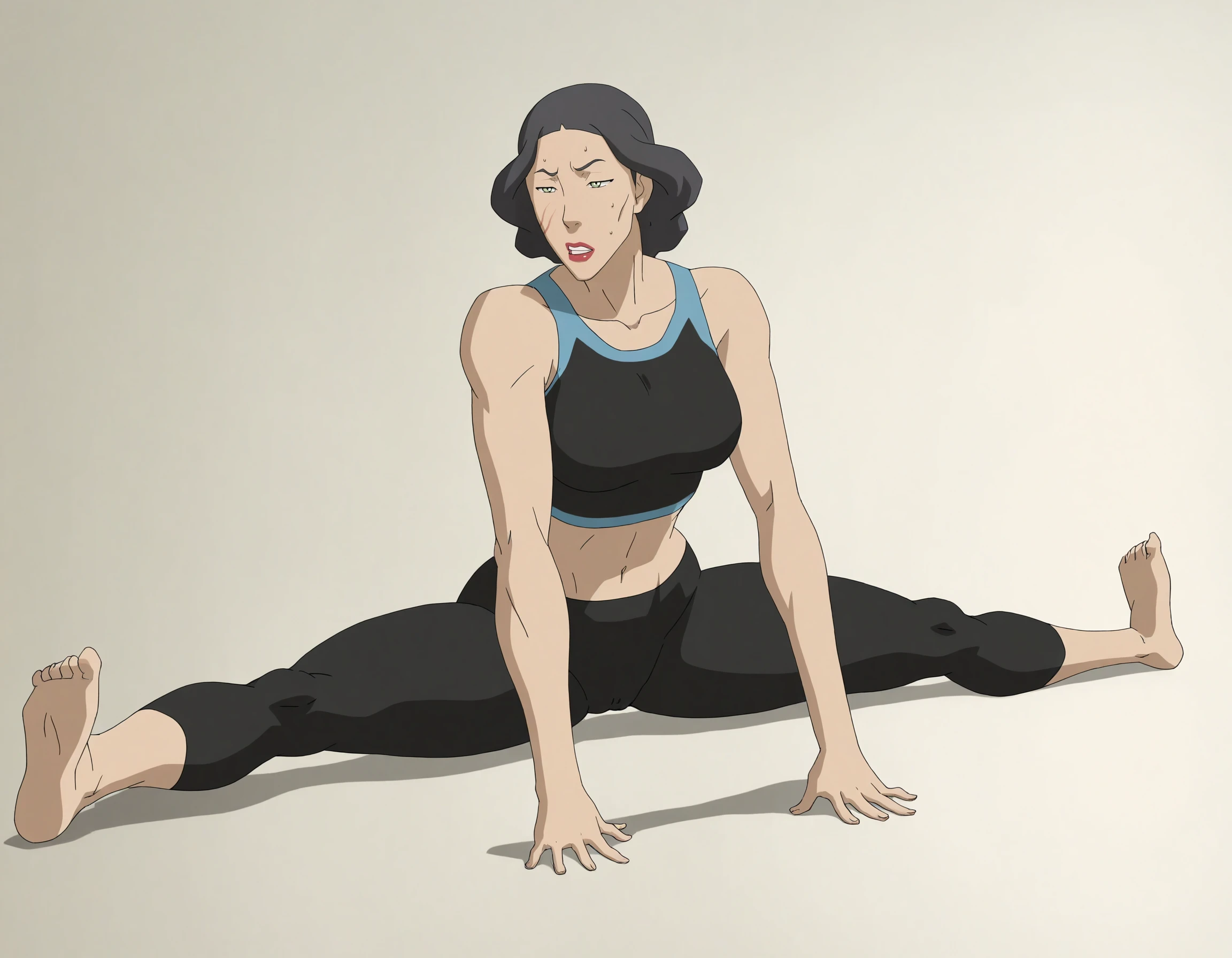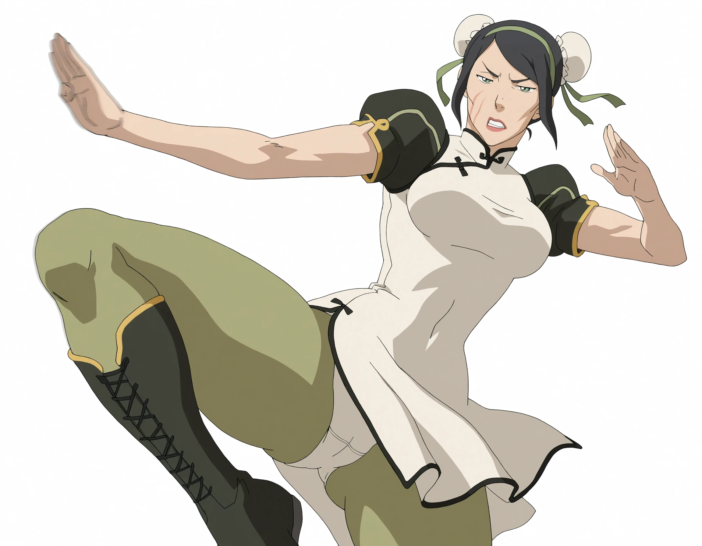 linbeifong, 1girl, mature female, scar on cheek, medium hair, parted hair