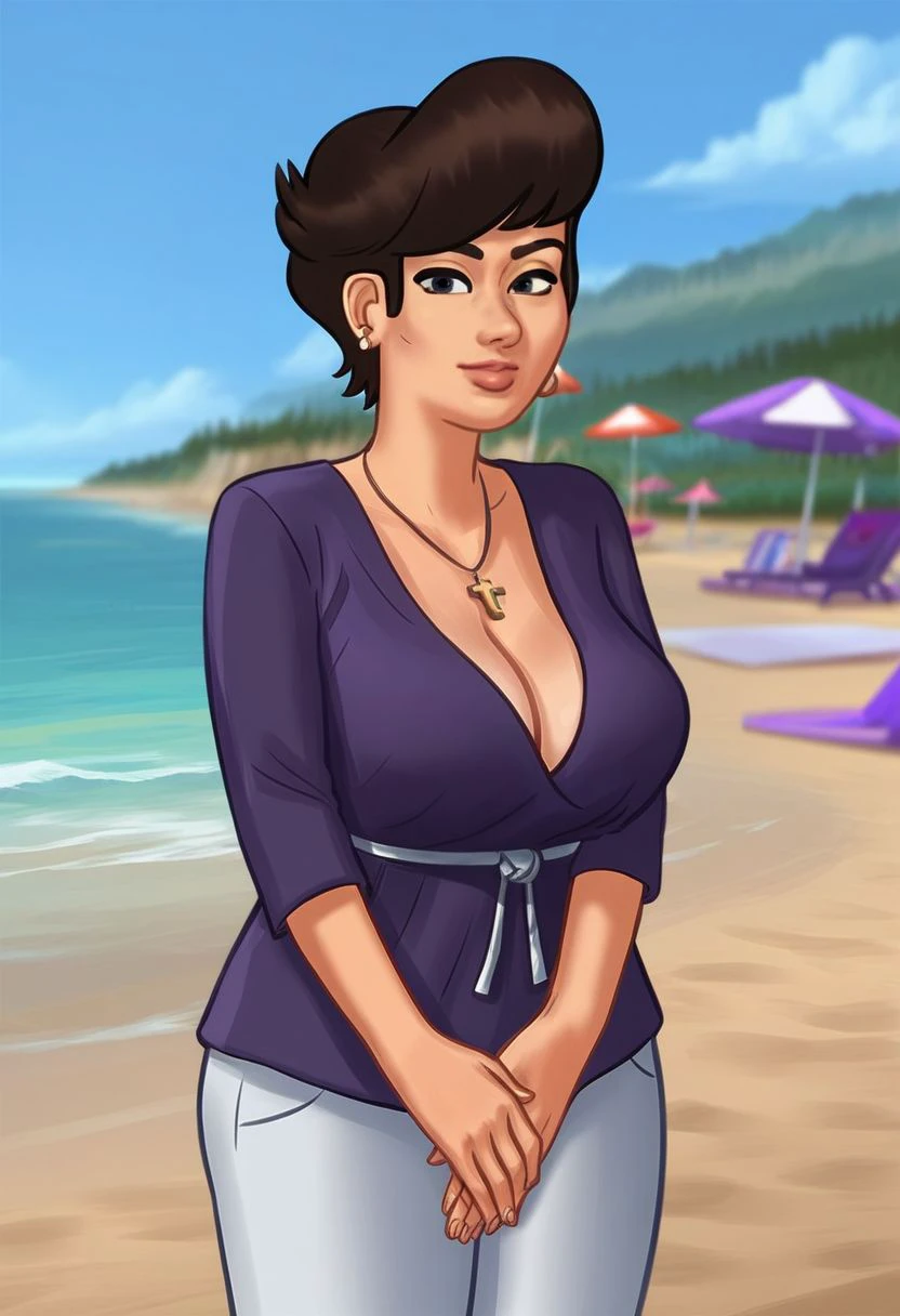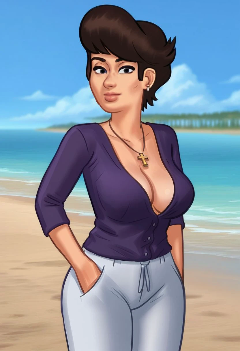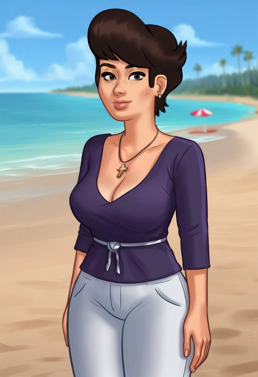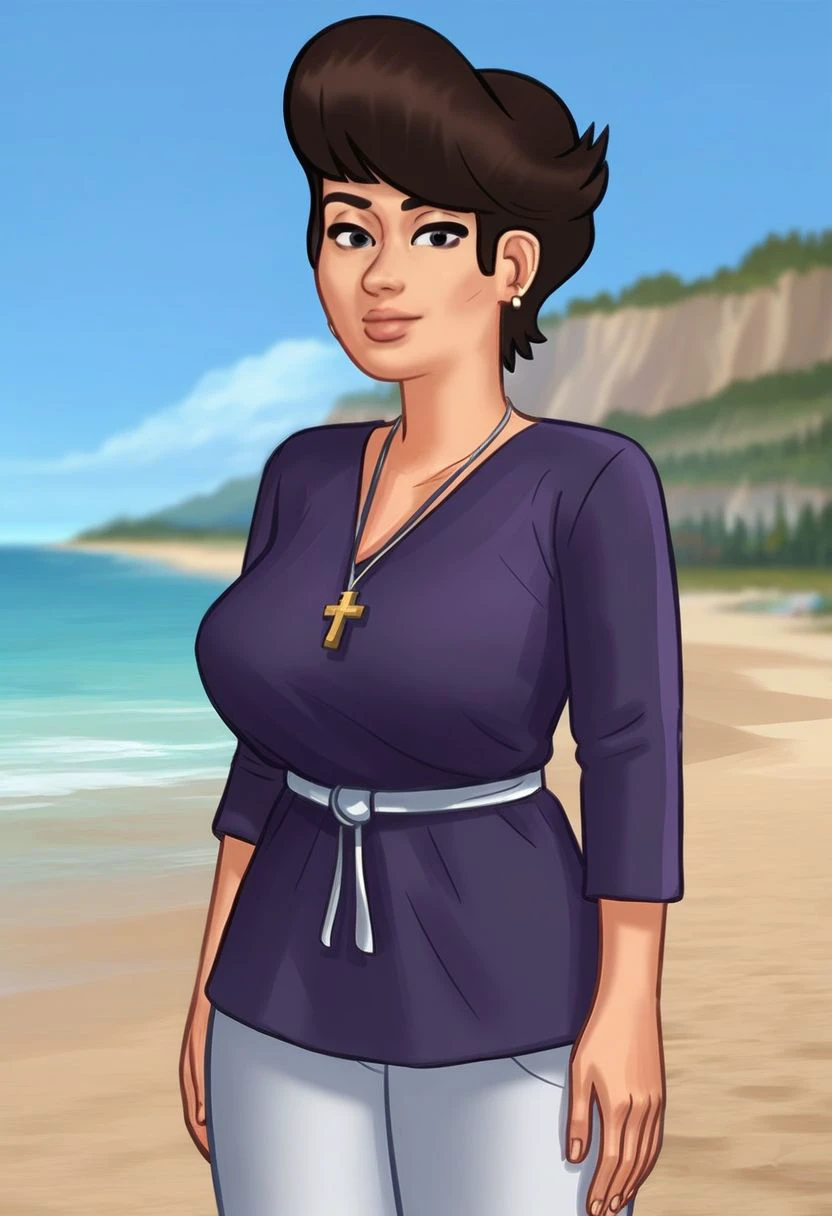 1girl, medium breasts, mature female, black eyes, brown hair, short hair