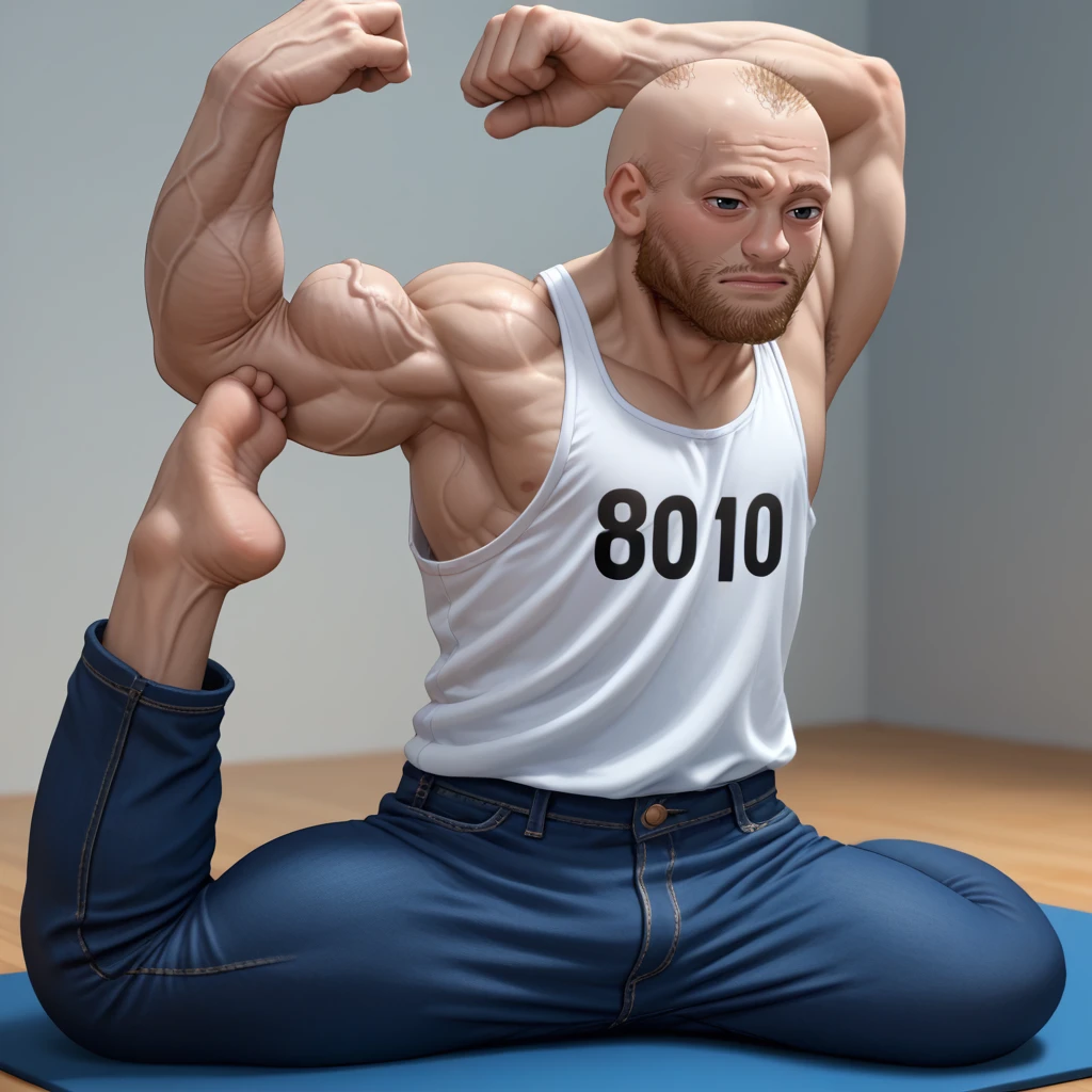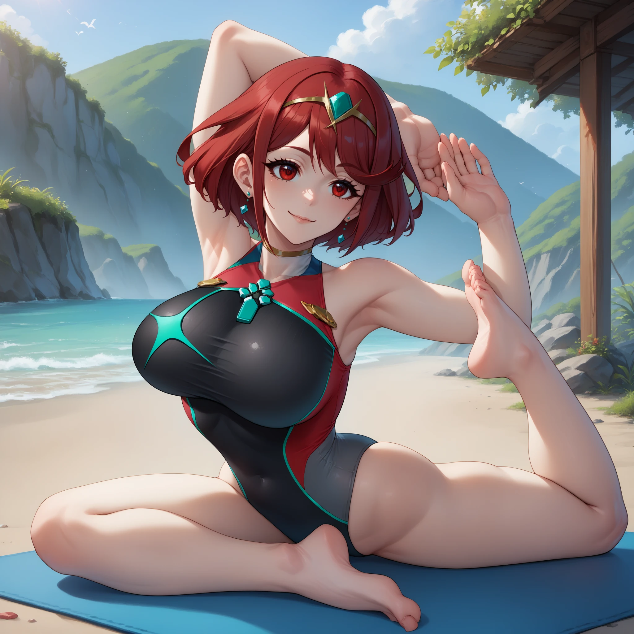 pigeon pose, stretching, flexible, exercise, arms up, own hands together, own hands together, feet