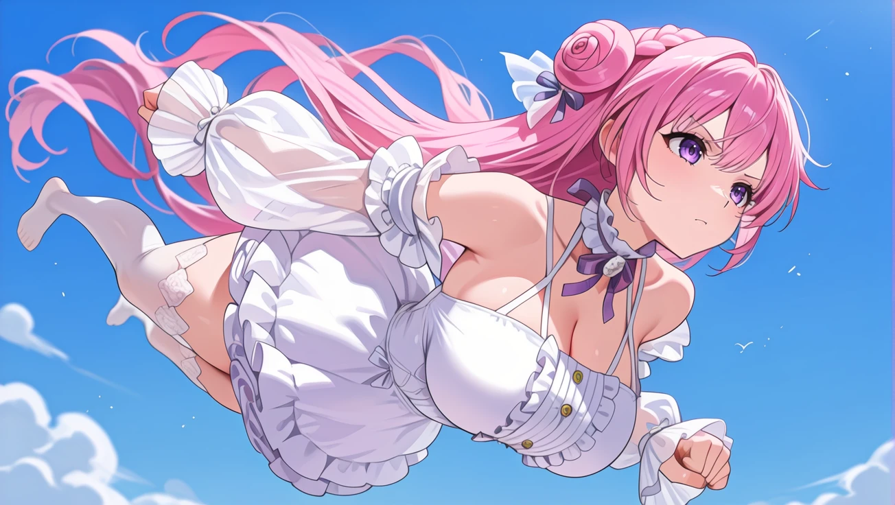 flying, clenched hands,