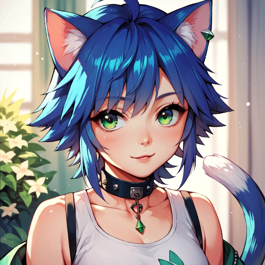 Tags: patikitten, anime girl, green eyes, cat ears, closed mouth, white top, collar