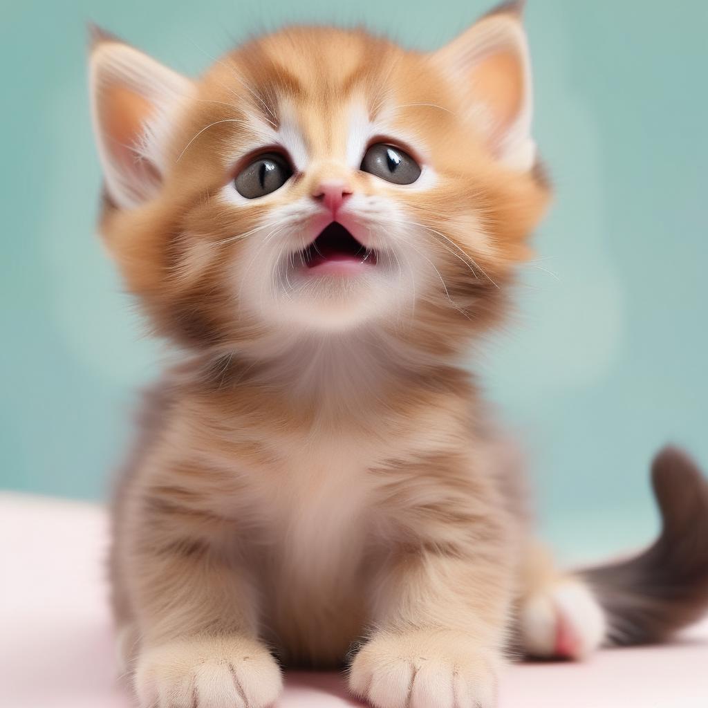 "absolutely outstanding image of fluffy cute kitten, sitting, adorable, cute little mouth slightly open, cute paws, nice scenery"
