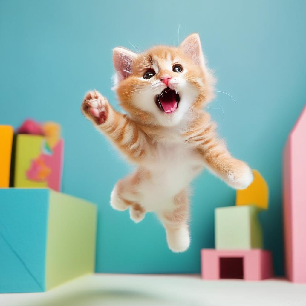 jumping: mid-air of kitten jumping (can look really goofy/funny)
