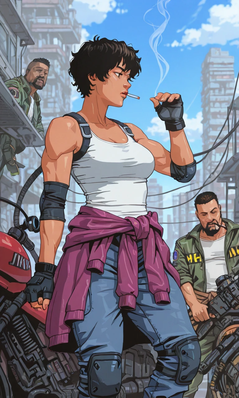 Recommended Tags: stylized, comic art, bold lines, action pose, urban style, animation style, dynamic angle