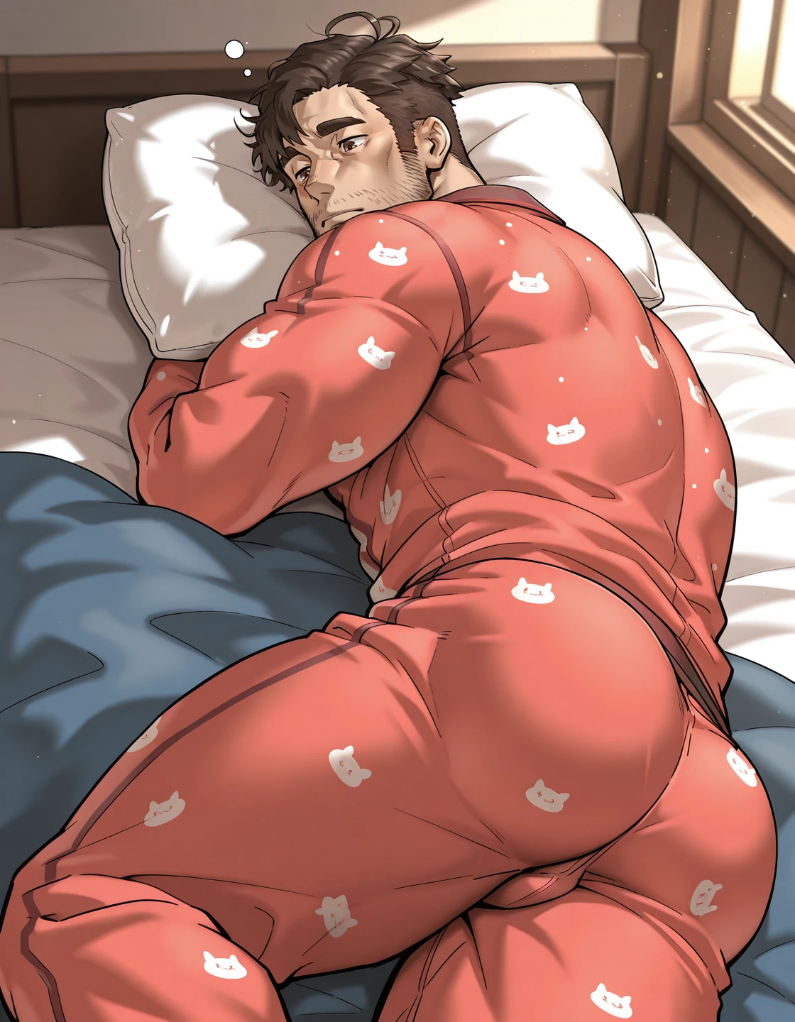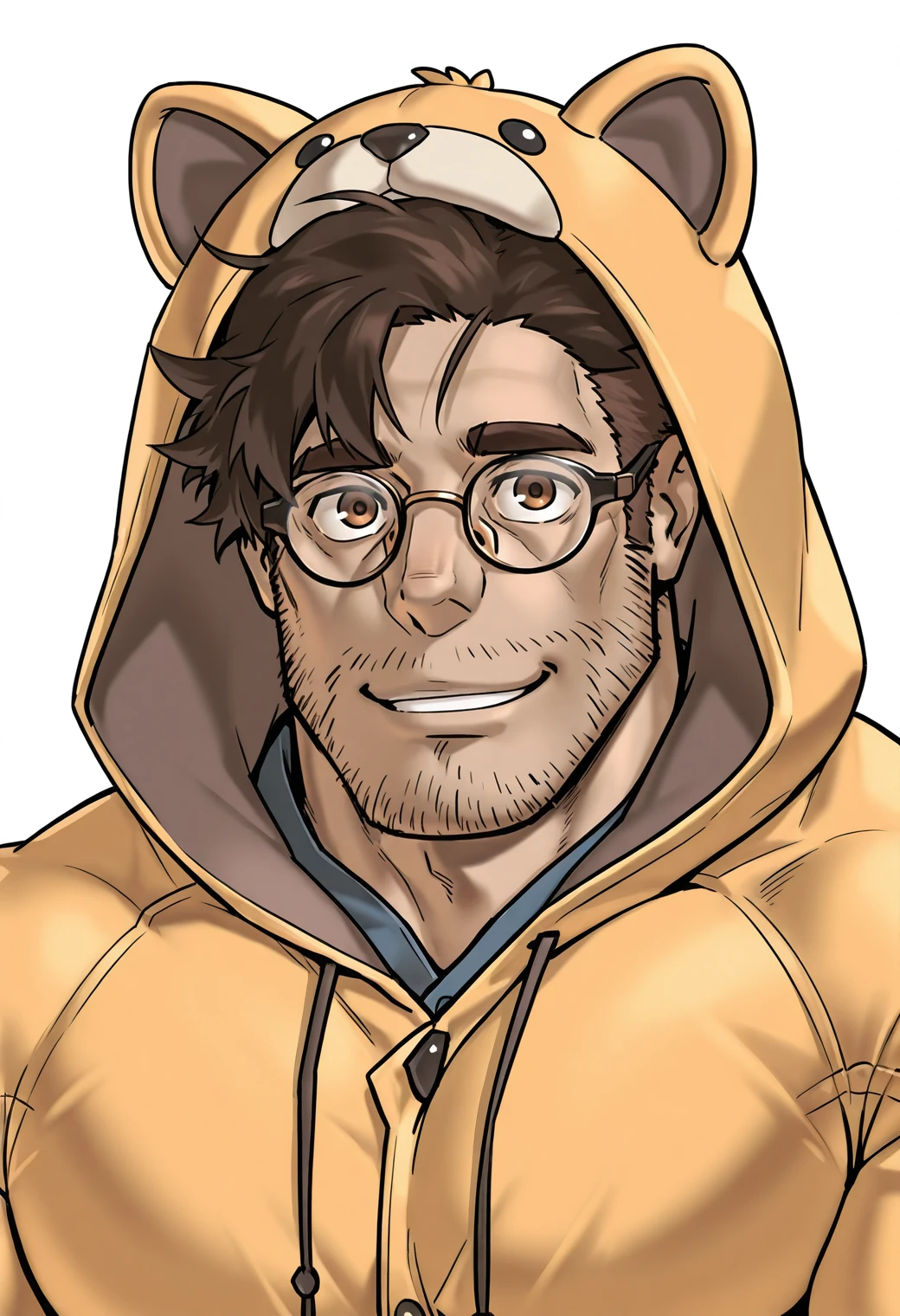 karue narihito, mature male, muscular male, thick eyebrows, sidecut, brown hair, short hair, brown eyes