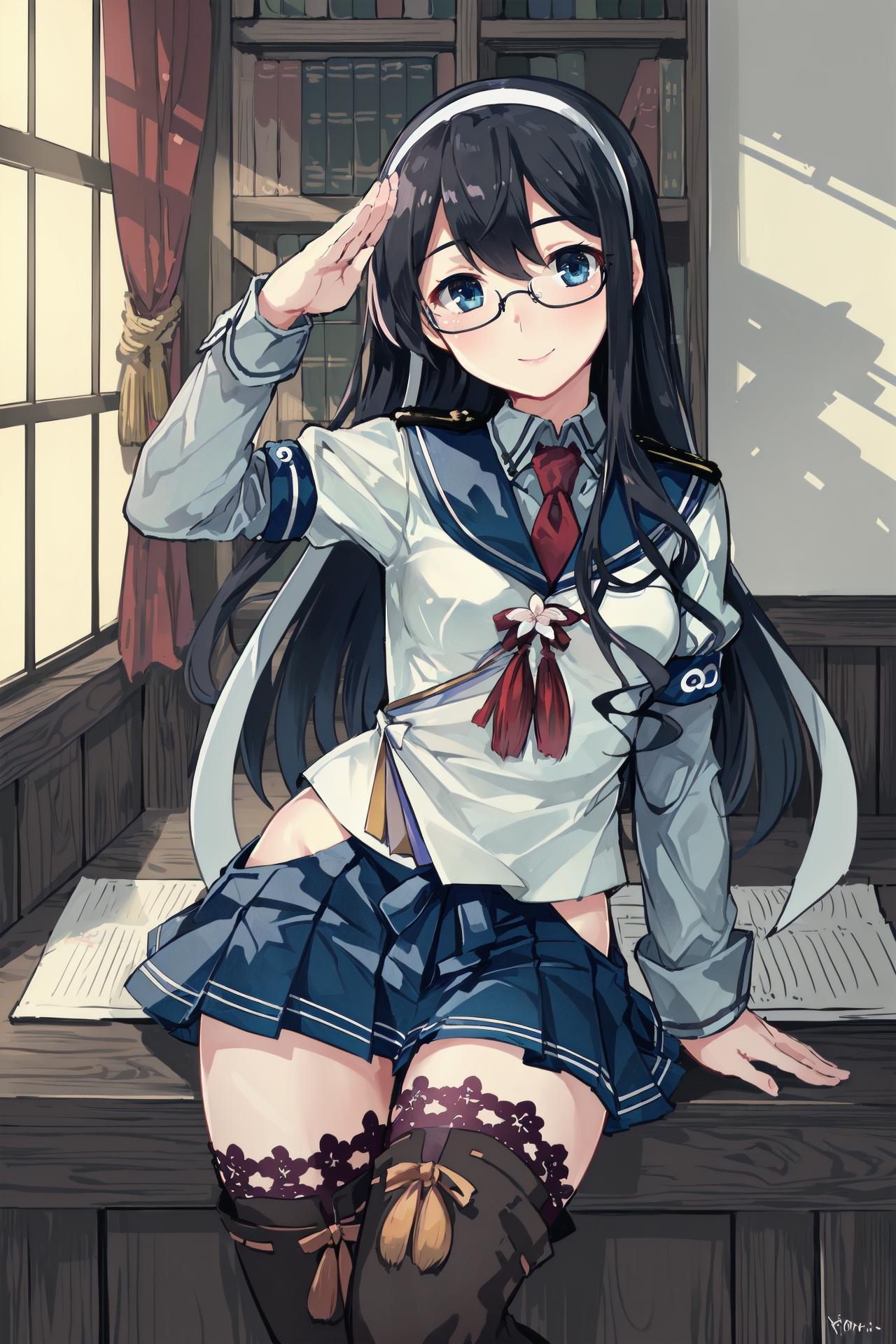 1girl, ooyodo \(kancolle\), blue eyes, semi-rimless eyewearBase Ooyodo (unremodeled) appearance