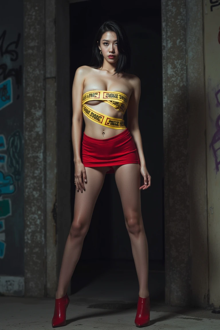 A sexy girl's body is wrapped in tape, only cover some little part of body