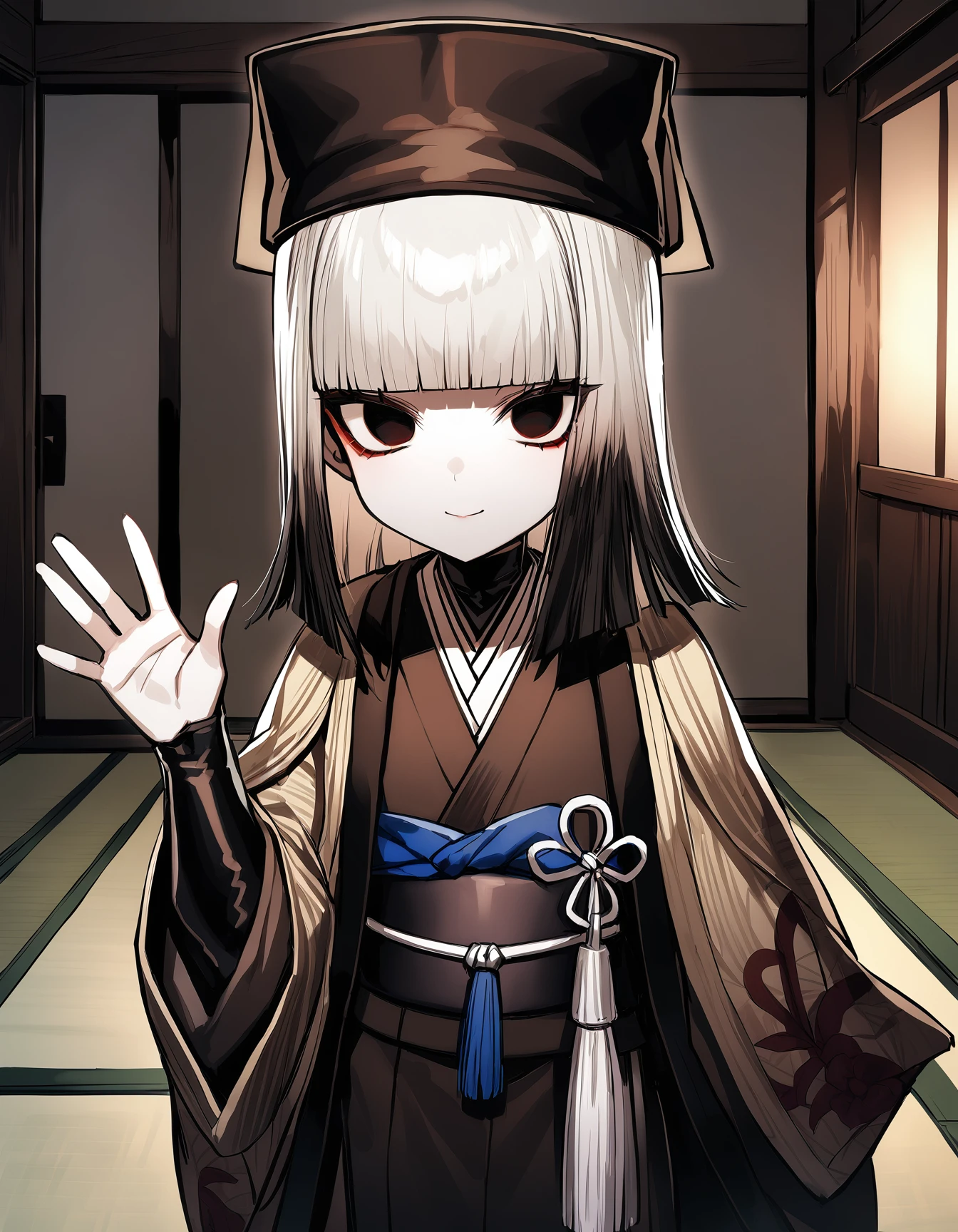 着せ替えの際にはNegpipを用いて(japanese clothes,kimono,black headwear:-1.0)とすると衣装が残るのを防げます。