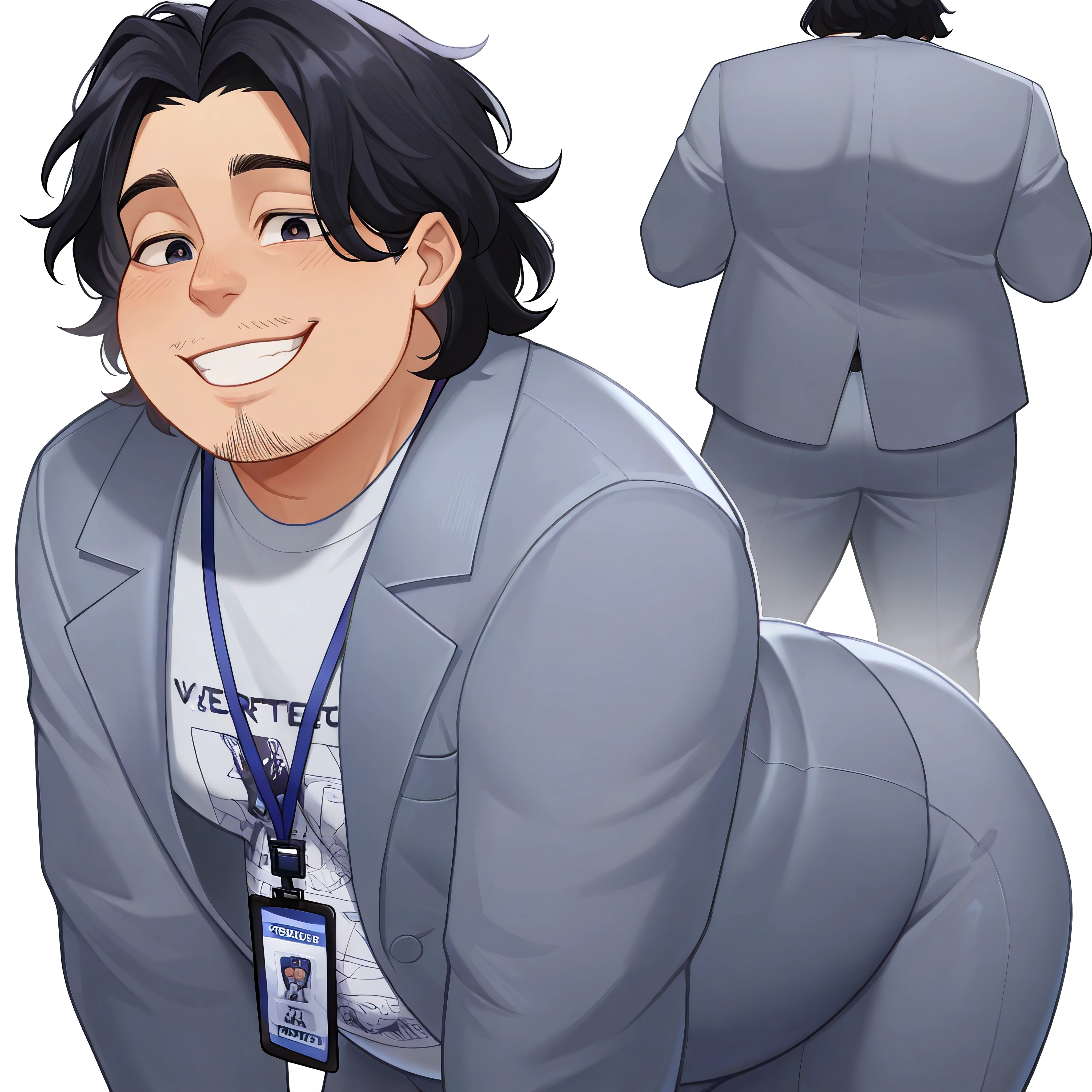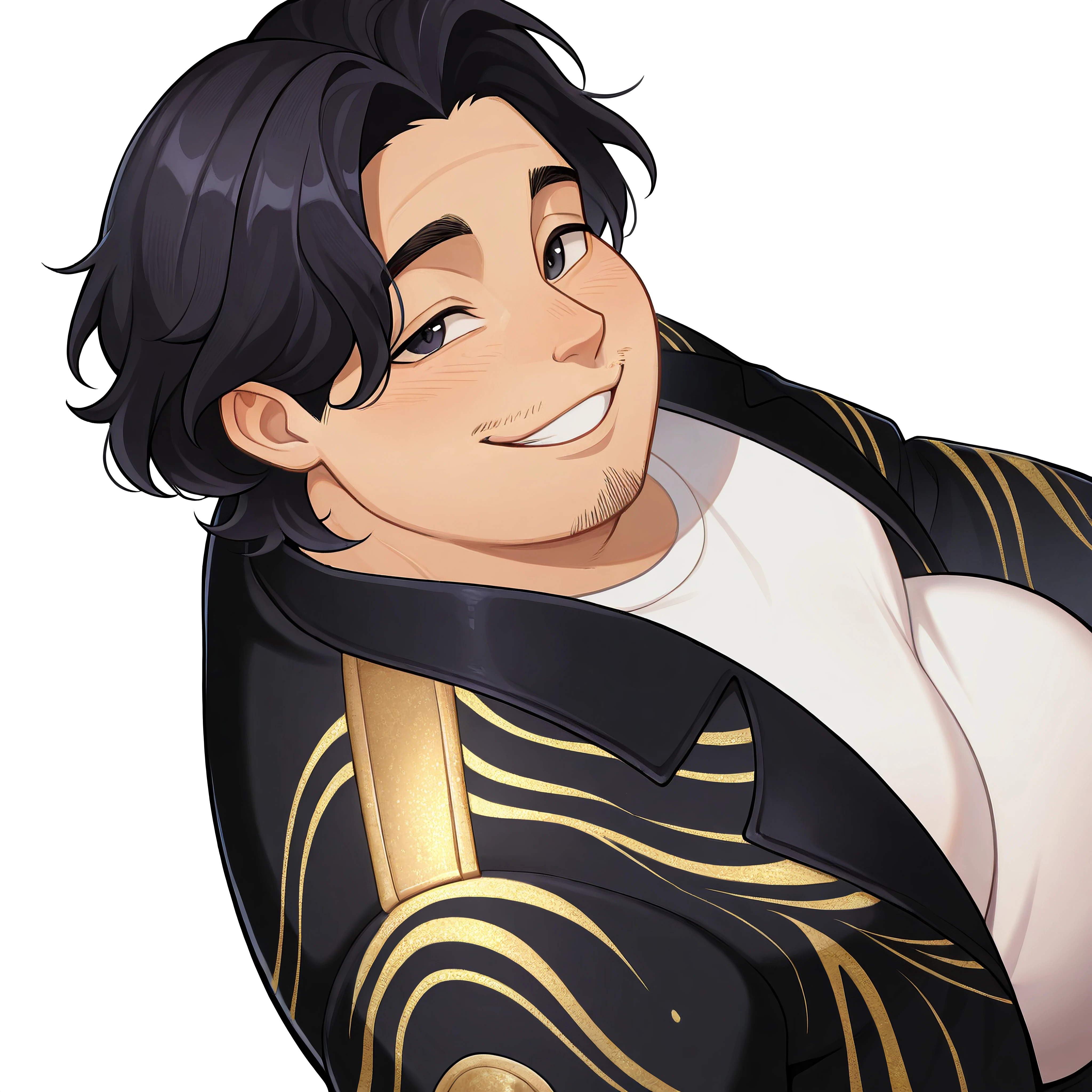 Prompts: bobby_KPDH, dark hair, dark eyes, facial hair, chubby