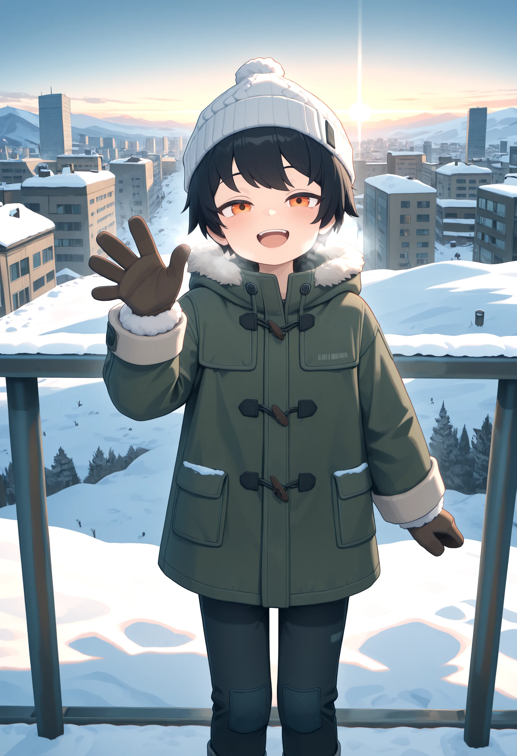1boy, Leif, solo, child, male child, black hair, orange eyes,