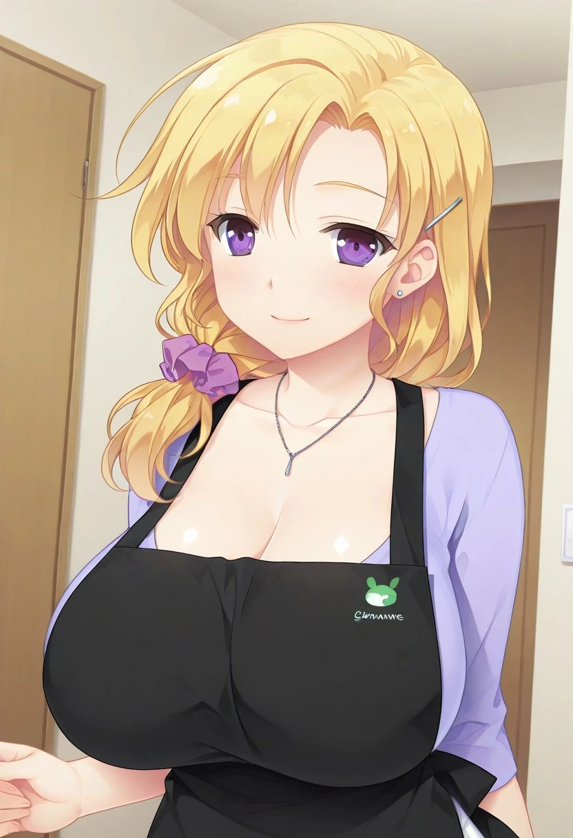 Nanayo Souma, purple eyes, blonde hair, low tied long hair, hair ornament, hairclip, earrings,