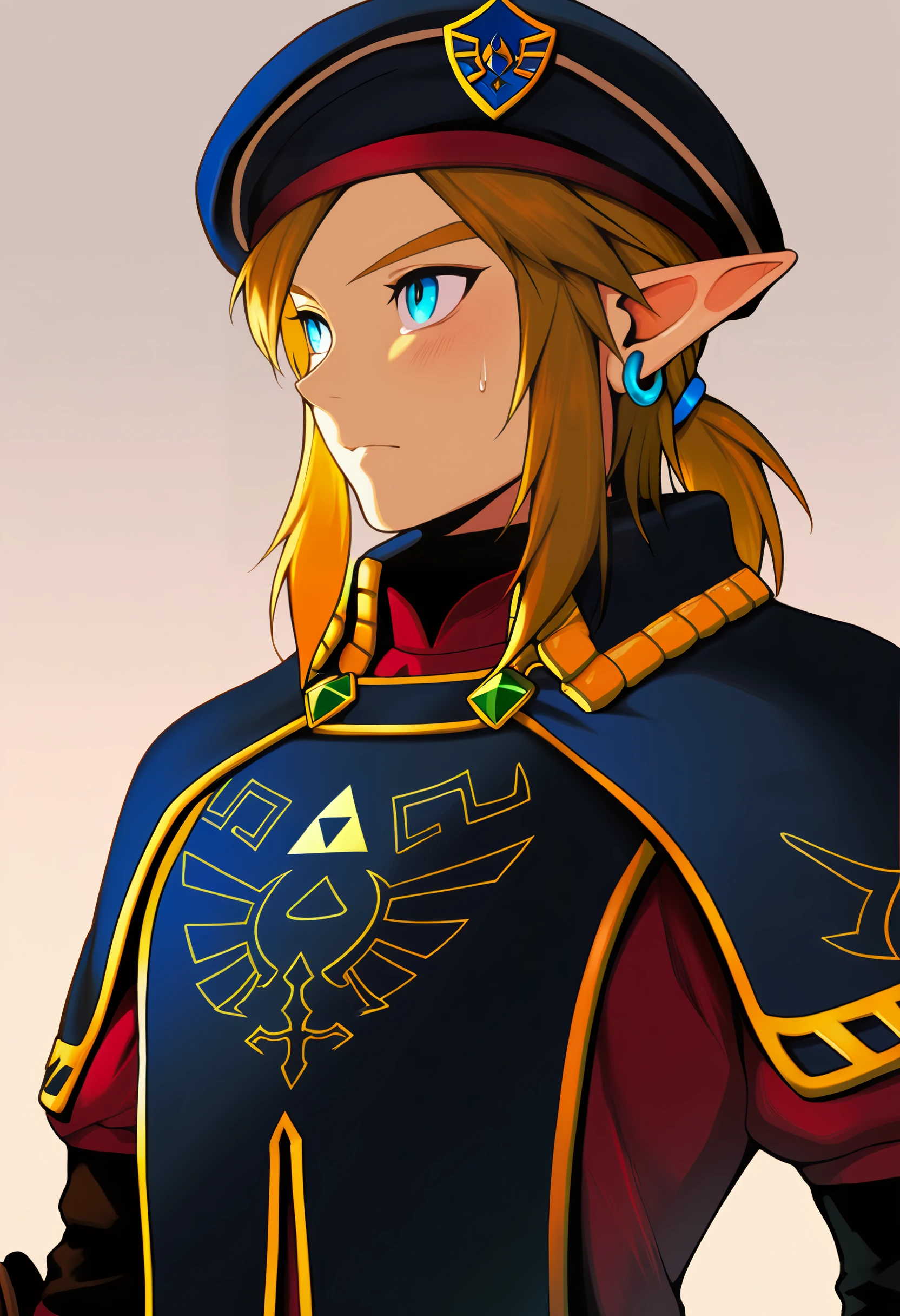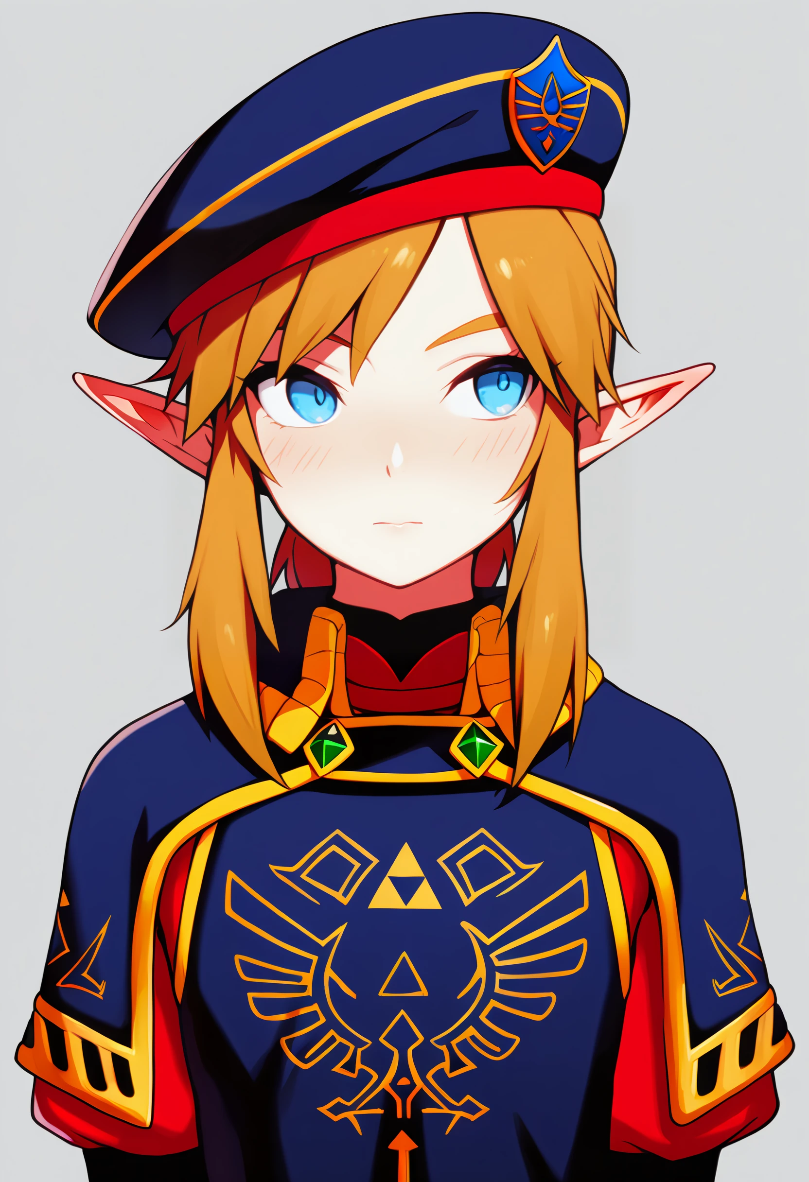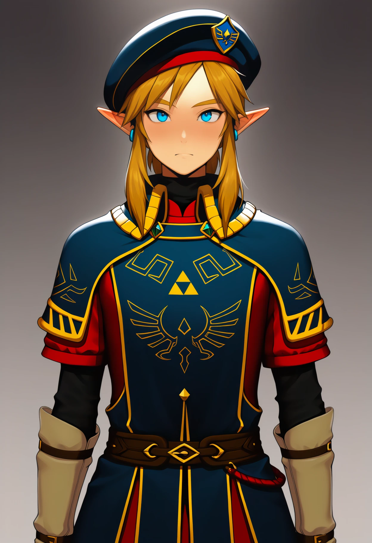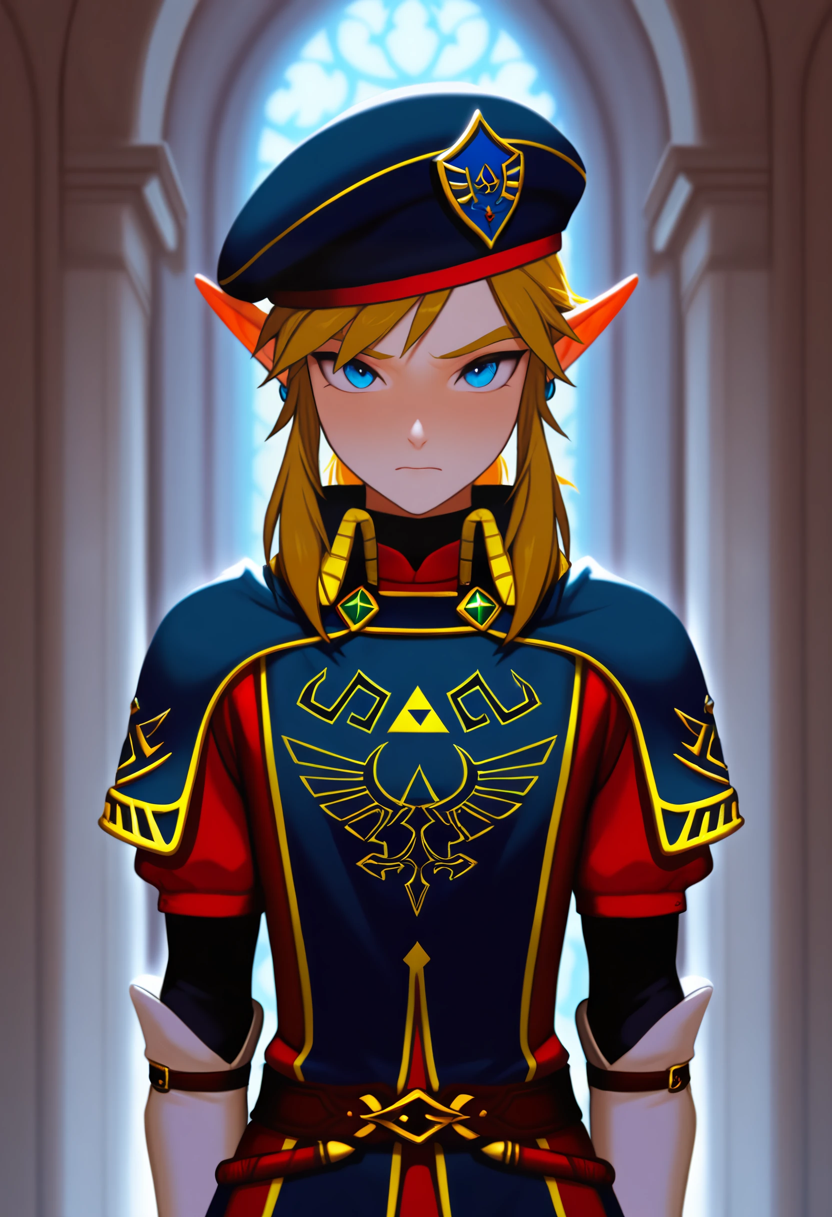 royal guard, link, 1boy, solo, blue eyes, beret, hat,SD1.5
